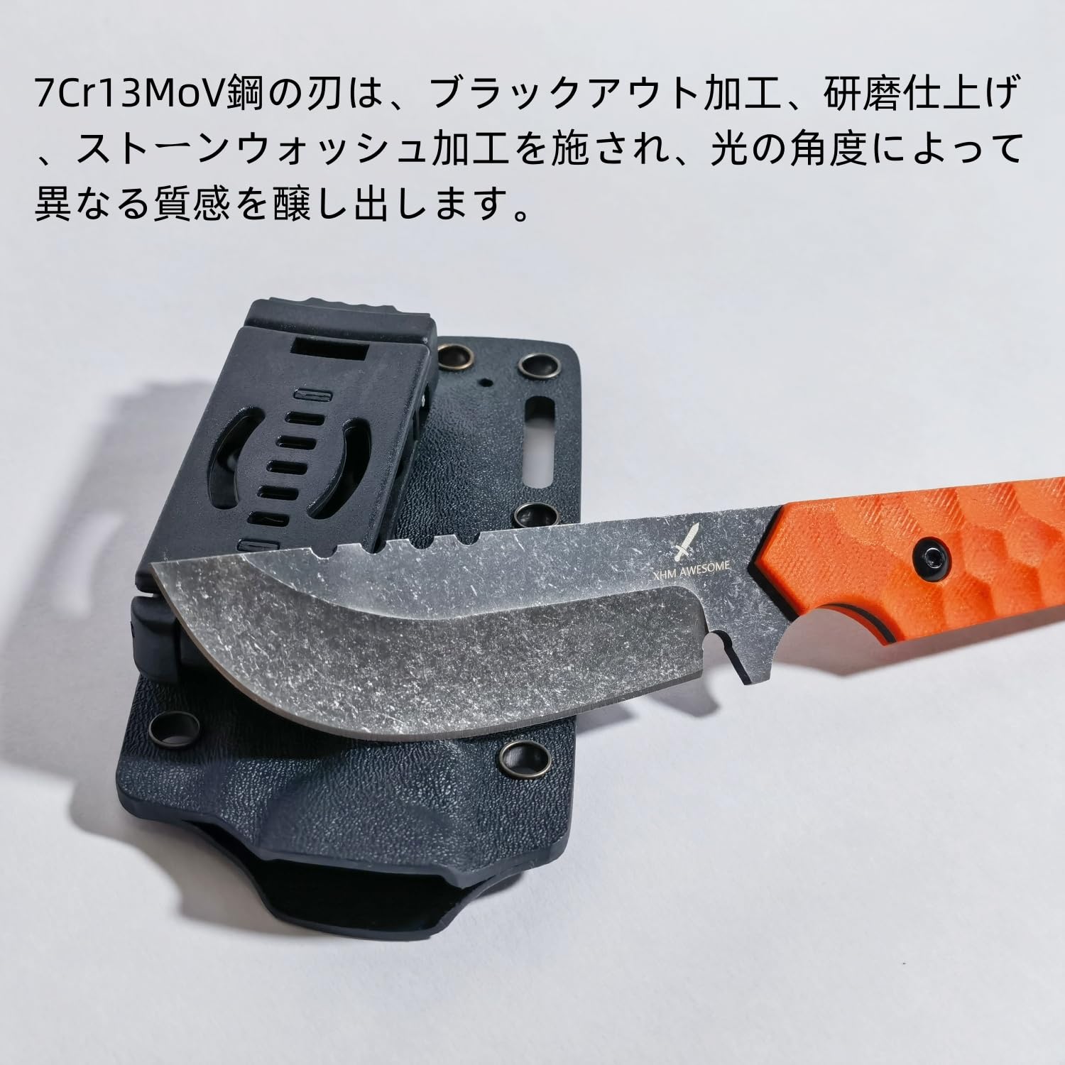 【新着商品】XHM Awesome【20cm シースナイフ】全龙骨構造 7Cr13MoV 鋼刃・耐衝撃設計|オレンジ G10 グリップ付き・両用 Kydex シース同梱|アウトドア/キャンプ/サバイバル/ハンティング/釣り向け | asaRulu0511