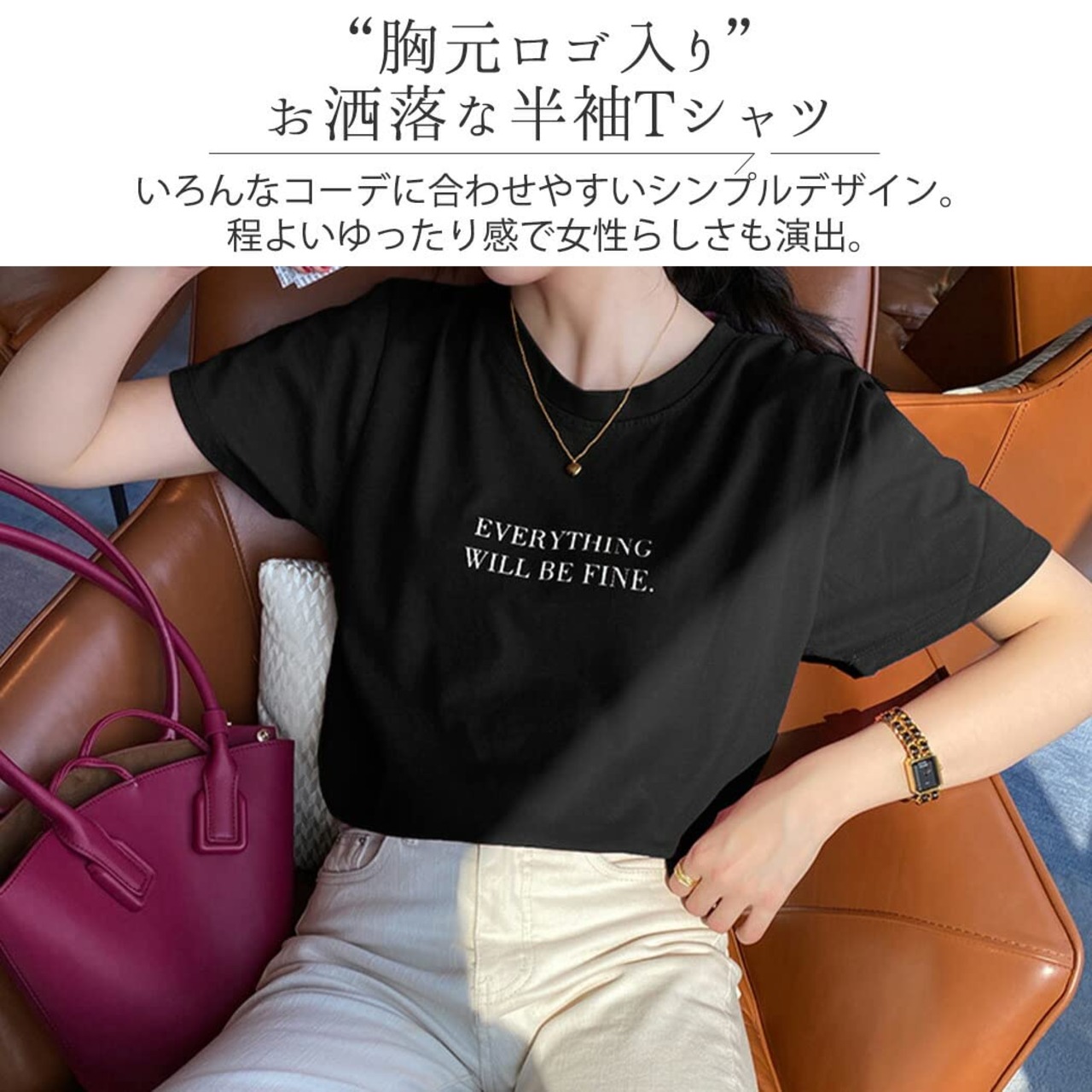 [Teddy] Tシャツ レディース 半袖 ゆったり カットソー 薄手 ロゴT ミドル丈 春夏 tops1411