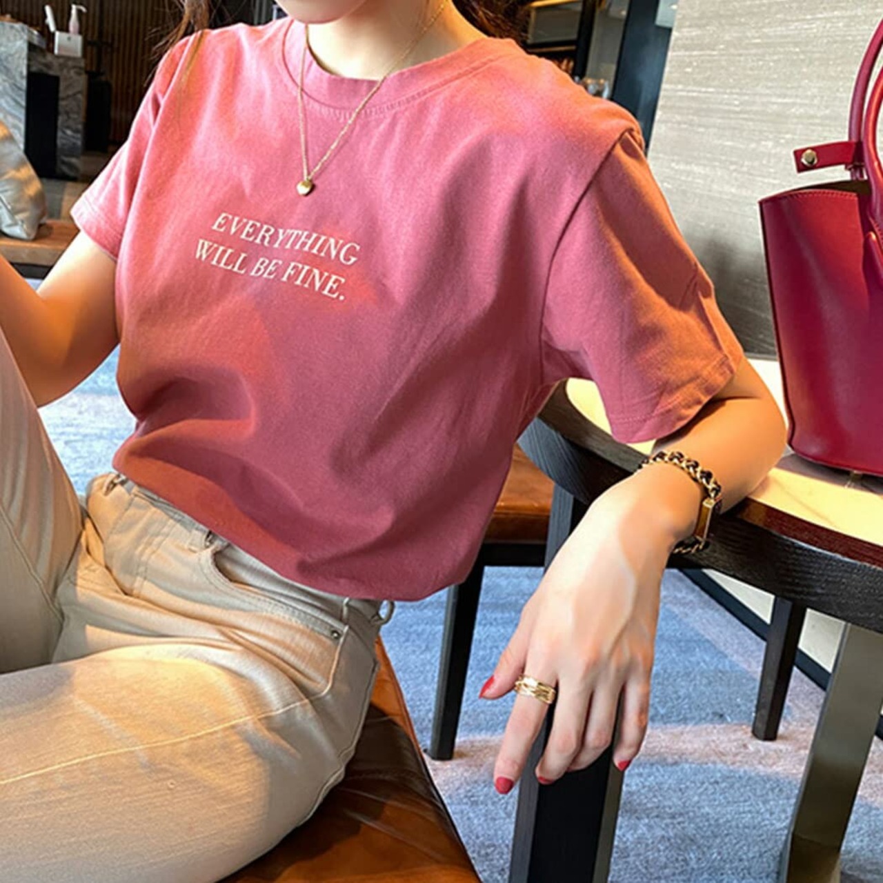 【数量限定】[Teddy] Tシャツ レディース 半袖 ゆったり カットソー 薄手 ロゴT ミドル丈 春夏 tops1411