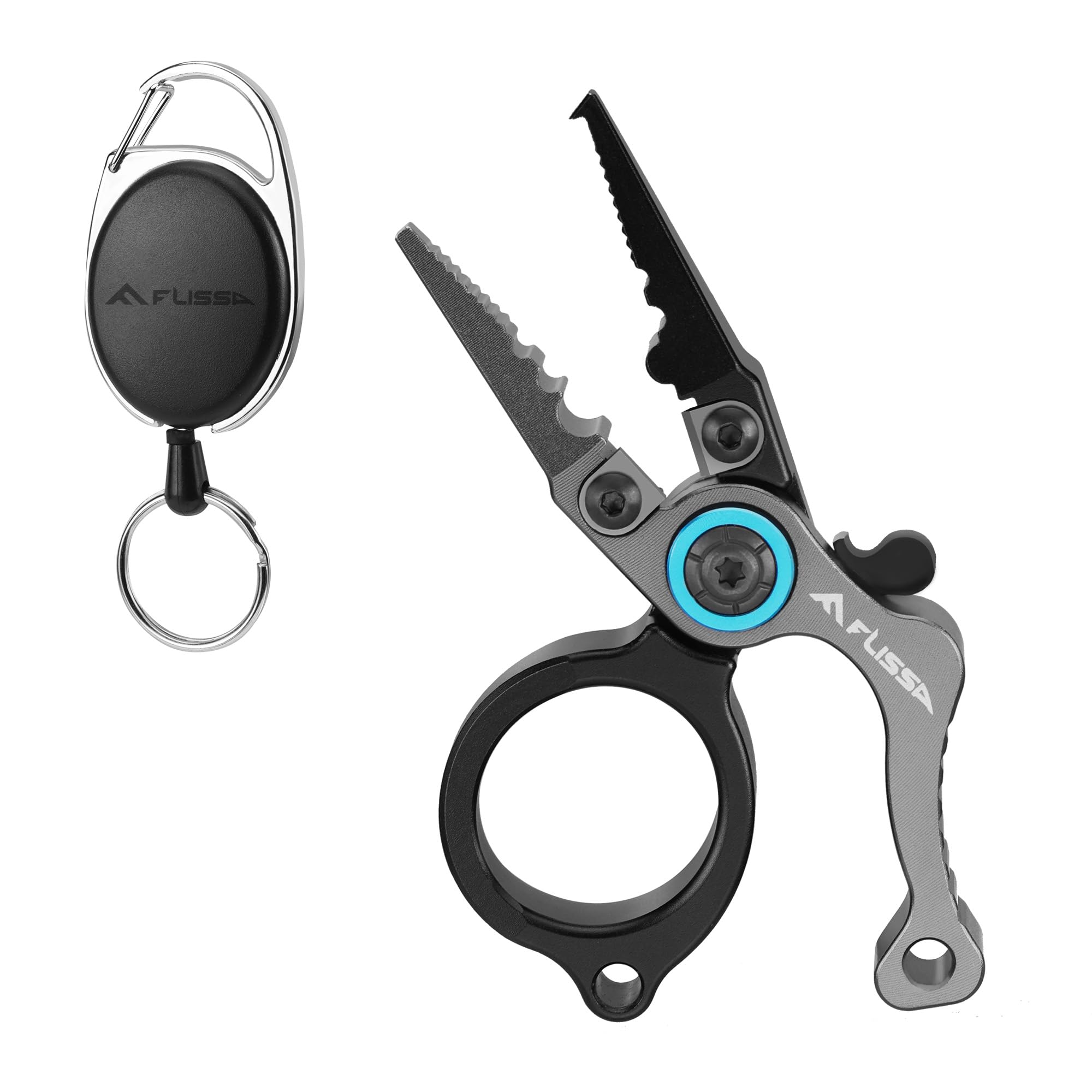 FLISSA フィッシングプライヤー 釣りプライヤー 釣りペンチ ミニ 小型 タングステン鋼 アルミハンドル ロック機構 フックはずし 針外し ラインカッター PEライン対応 0.8mmワイヤー切断可能 ピンオンリール付き 紛失防止 安全 防錆 軽量 多機能 海釣り 川釣り 穴釣り
