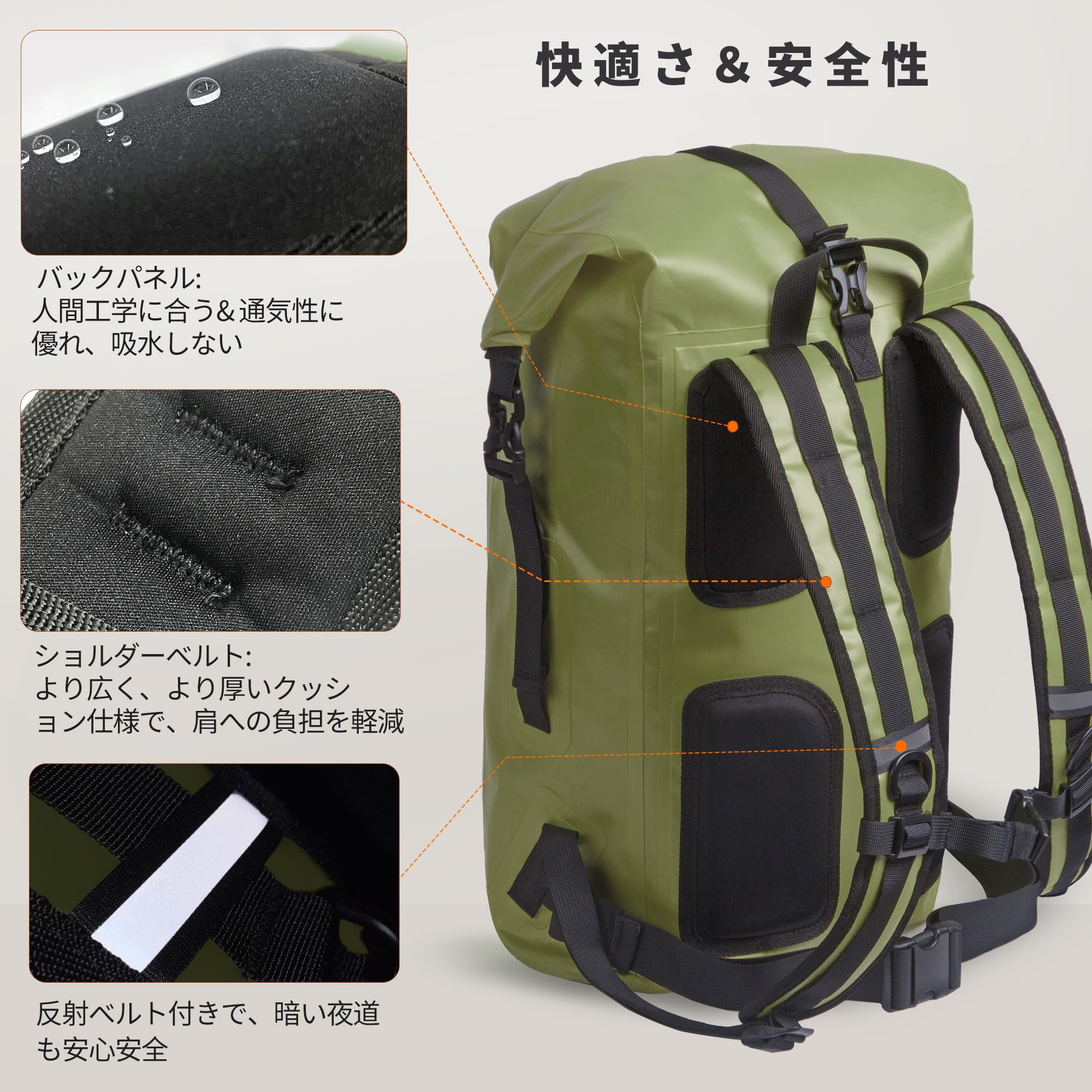 [Origem] ドライバッグ 防水バッグ 35L/55L/85L 大容量 完全防水 リュック 新型素材 折りたたみ式 防水 防塵 3色 登山 旅行 ハイキング アウトドア(アーミーグリーン55L)