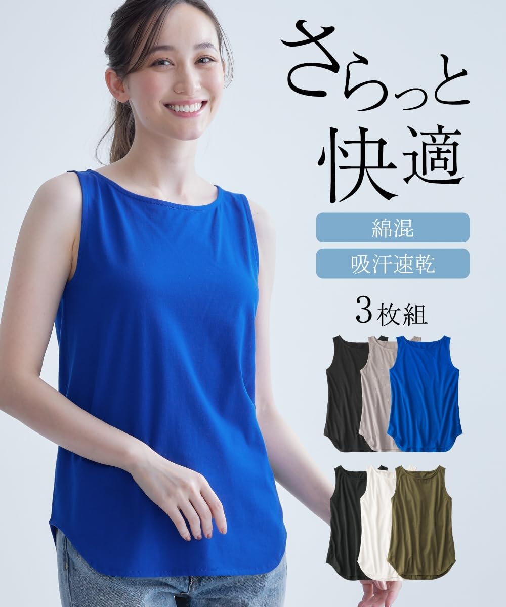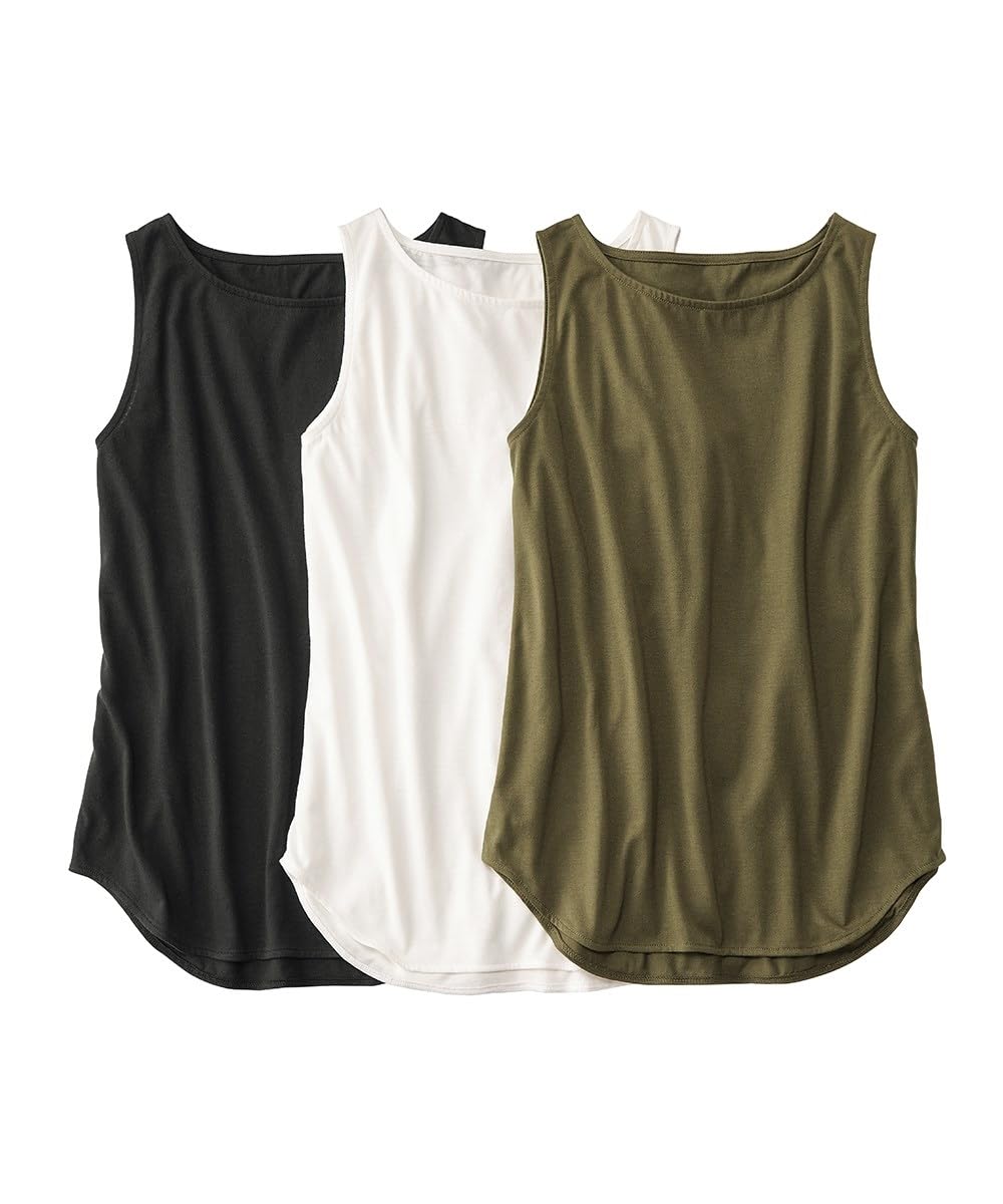 [ニッセン] タンクトップ 綿混吸汗速乾 ボートネックロング丈タンクトップ3枚組