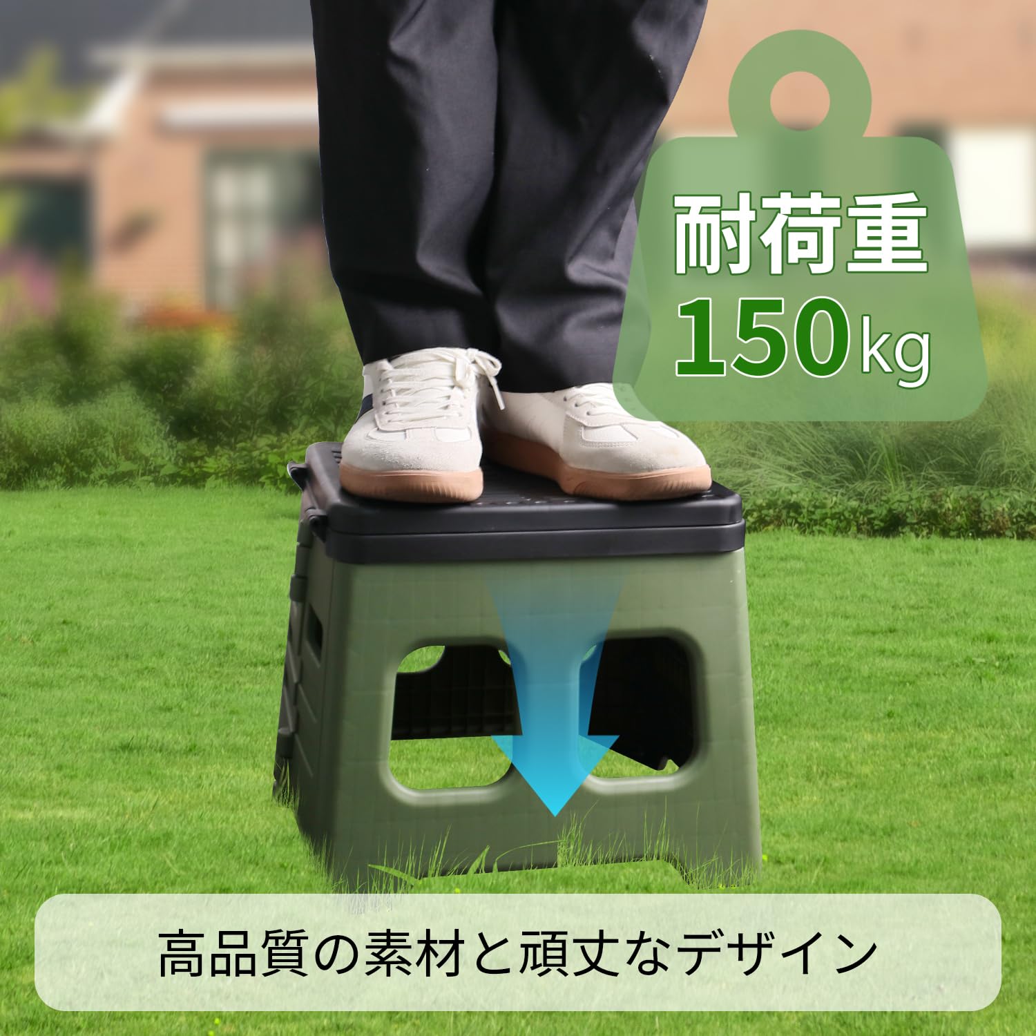 【150kgの耐荷重と抜群の安定感】携帯トイレは150kgまで耐えられる頑丈な構造で、安心してお使いいただけます。ひび割れや変形の心配がなく、使用中の揺れやズレを防ぎます。使用後は丸ごと水洗いするだけで、繰り返し利用できます。