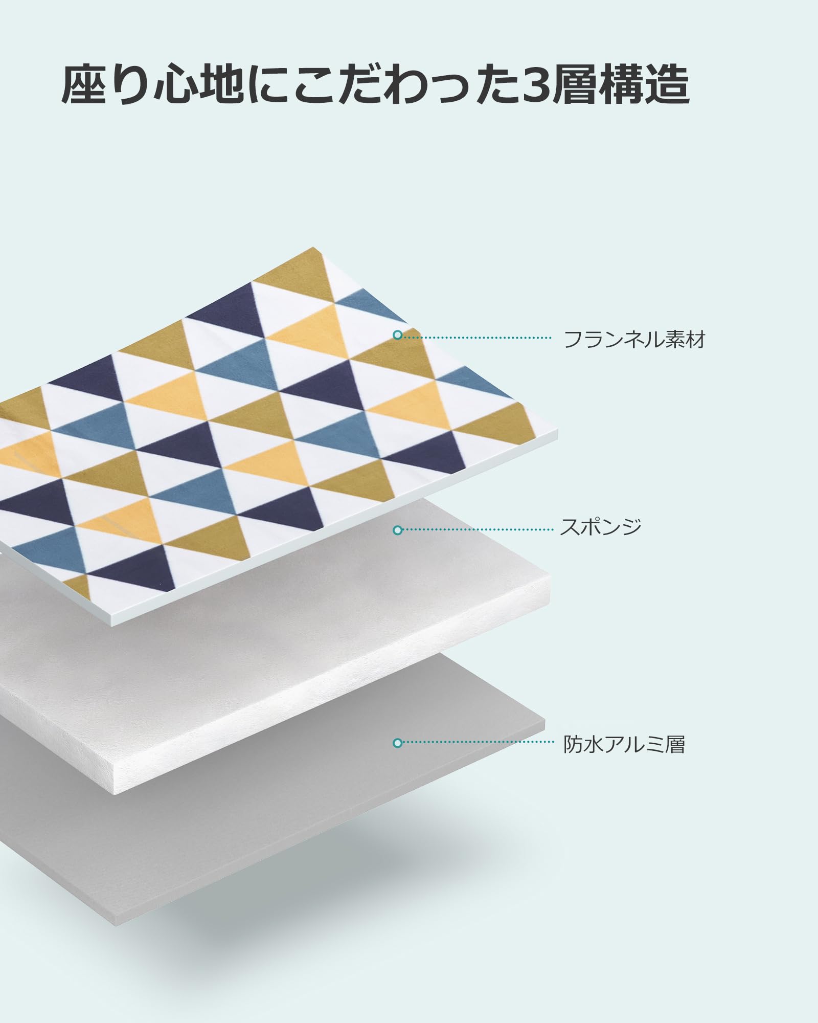 【座り心地にこだわった3層構造】3層構造で地面のゴツゴツ感を和らげてくれ、長い時間座ってもお尻も痛くなりません。厚手の生地なので、座った時の冷たさや暑さなどを緩和してくれて、優しい座り心地で快適です