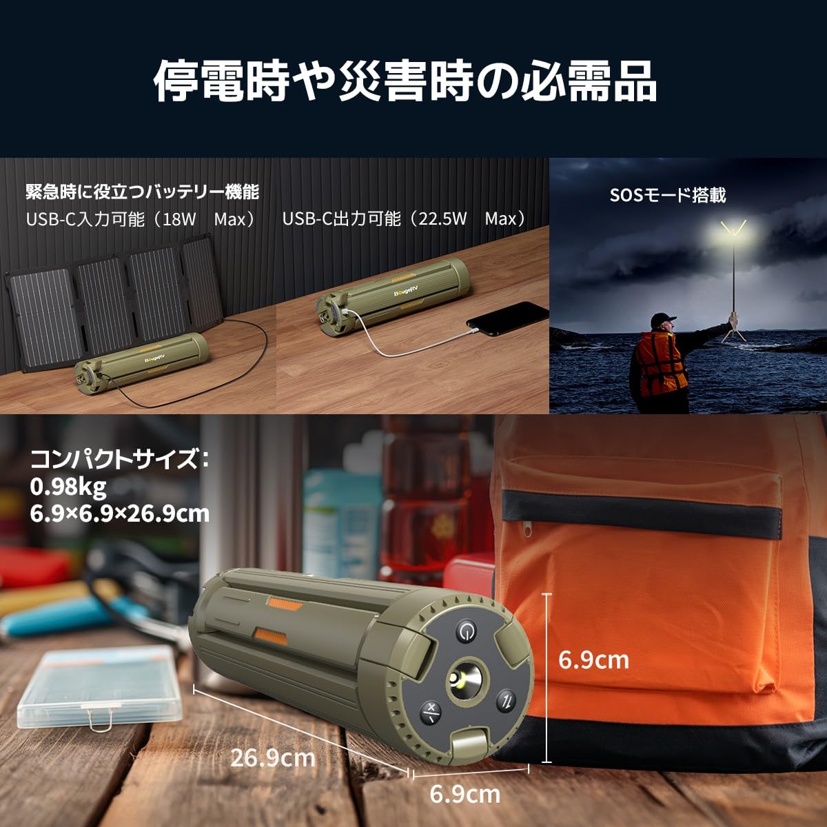 【長時間の内蔵バッテリー】 15600mAhの大容量バッテリーを搭載し、最大60時間の連続使用が可能です。また、USB-C出力ポートも付きので、災害時や停電時に他のデバイスへの充電もサポートしています。