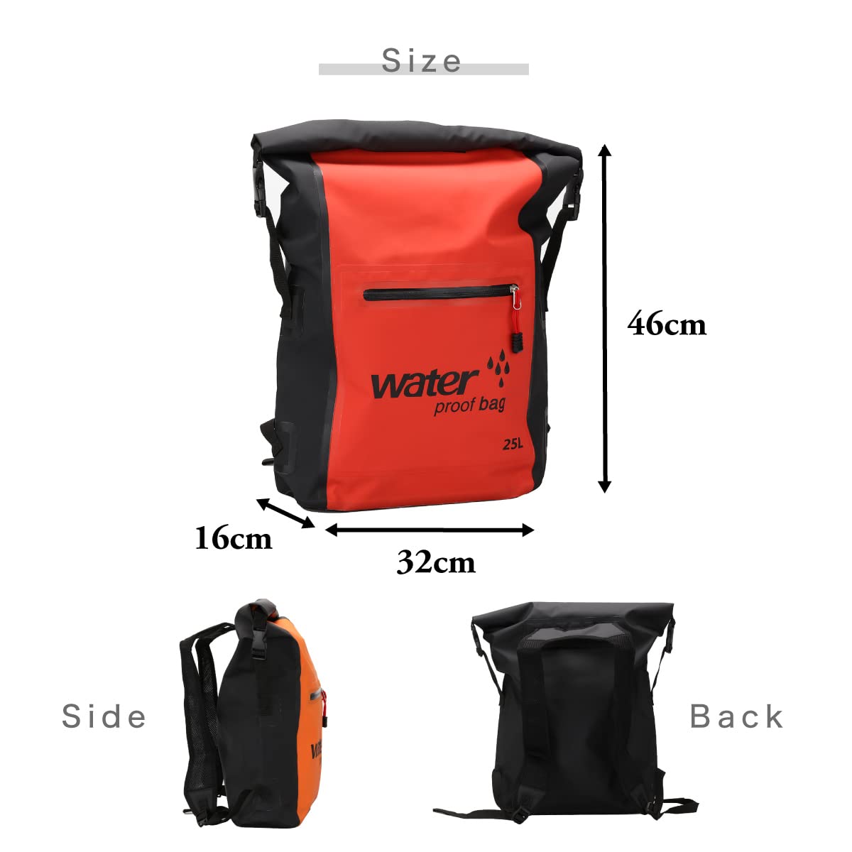 【収納力抜群】大きな開口部になっているので荷物の出し入れが簡単です。大容量の25Lサイズで水着、衣類はもちろん、タオルなども一緒に収納可能です。 ※本製品は完全防止ではございません。ポケットも止水ファスナーではありませんのでご注意ください。本製品の使用により生じた収納物の破損及び故障に関する補償は一切いたしかねます。あらかじめご了承ください。
