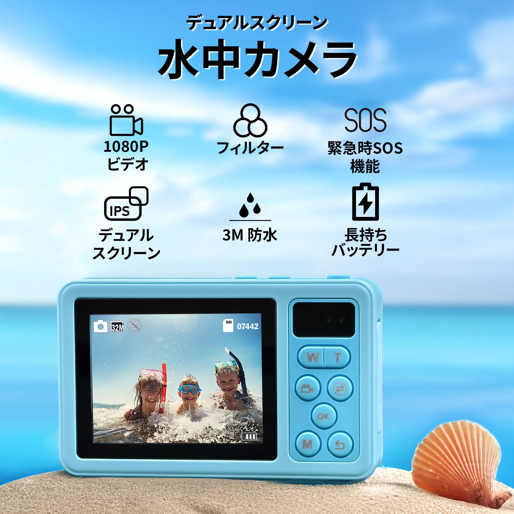 【新着商品】防水カメラ 1080P 自撮可能 防水デジカメ 動画&写真 3M防水 ケース不要 水中カメラ 操作簡単 フラッシュ撮影をサポート 軽量 コンパクト 32GB Micro SDカード付属 バッテリー付き (ブルー) | asaRulu0511