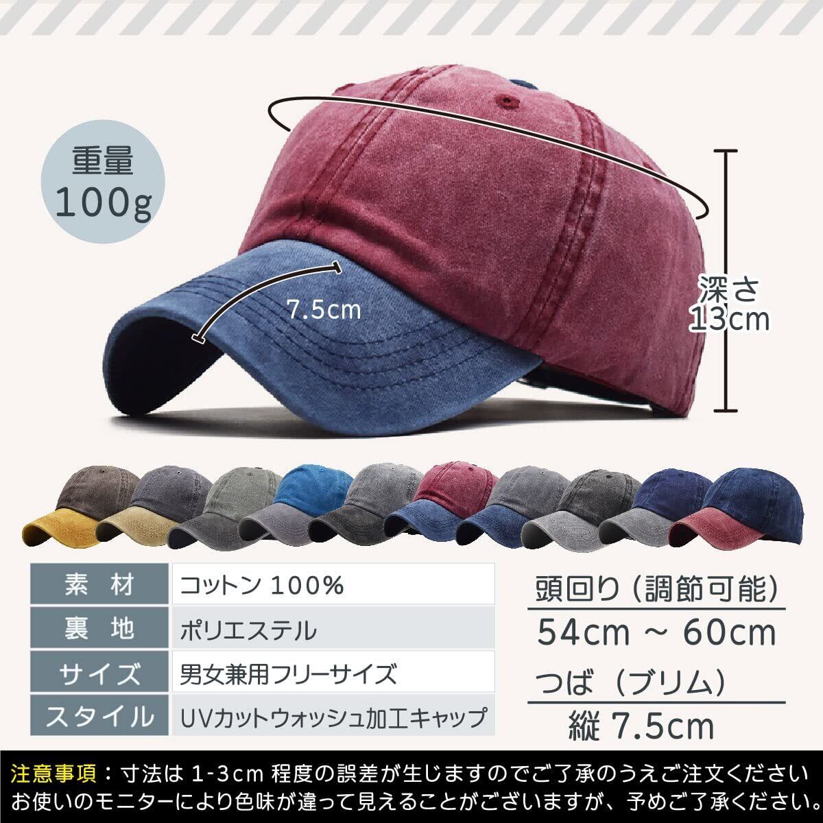 ツートンカラーでオシャレ度アップ! ウォッシュ加工の落ち着いた風合いの帽子です。 どんなコーデにも合うので、オールシーズン活躍でコスパ最強! 年中降り注ぐUV対策・紫外線対策にもなります。 カジュアルシーン以外にもゴルフ、釣り、登山、アウトドアスポーツにオススメです。 後部ベルトでサイズ調整可能なフリーサイズ。 ユニセックスに利用出来ます。 サイズ等の製品仕様は商品画像をご参照下さい。