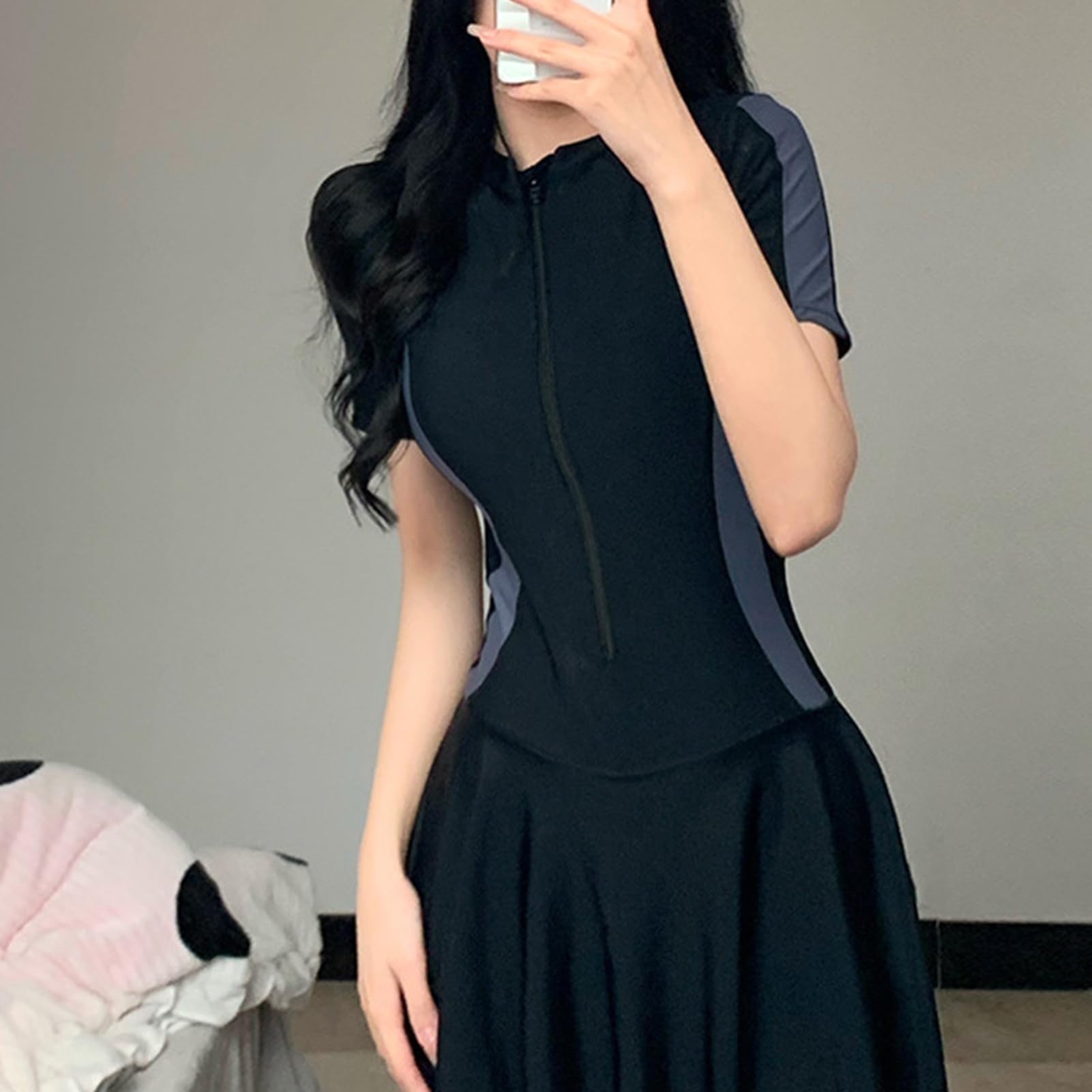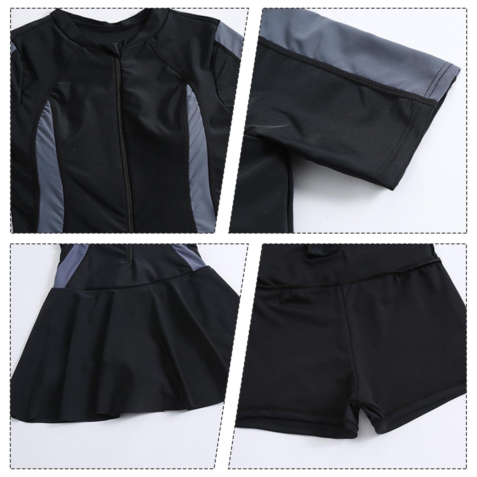 [Matreeglam] レディース 水着 ワンピース水着 フィットネス水着 スクール水着 半袖 オールインワン ラッシュガード スポーティー水着 体型カバー 水着 ビーチウェア めくれ防止 大きいサイズ ファスナー UVカット ソフト肌触り 温泉