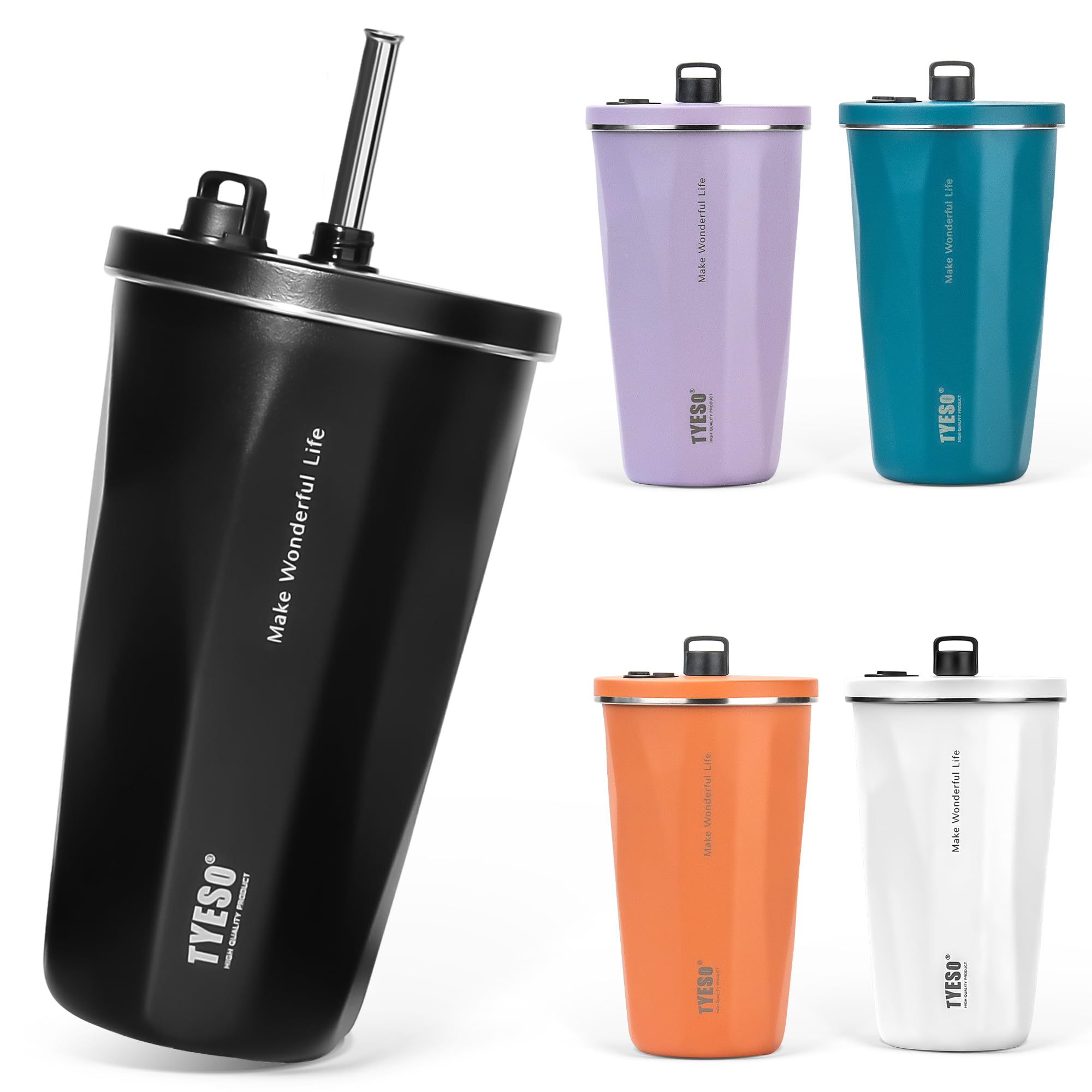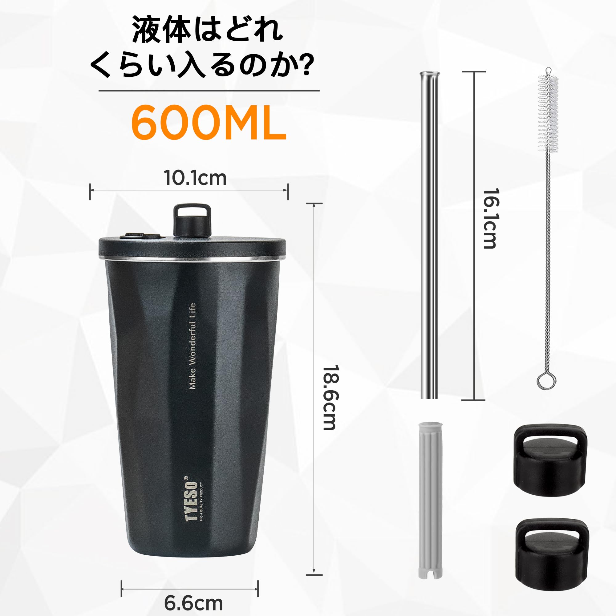 TYESO タンブラー ストロー付き ステンレス 広口 真空断熱 ホームオフィス アウトドア 多色 保温 保冷 ふた付き 600ml 大容量 女の子 男の子