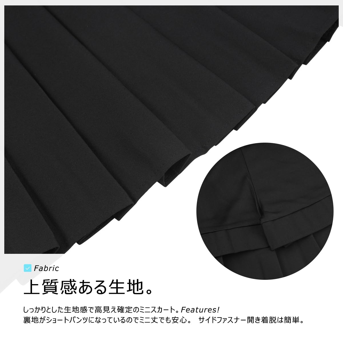 【スクールスカート インナー付き】この制服スカートサイドファスナーはあります。ウエストもすっきりaラインをキープ。ショートパンツタイプのストレッチの生地で裏地付きで、隙間もあまりなく安心して着用いただけます。
