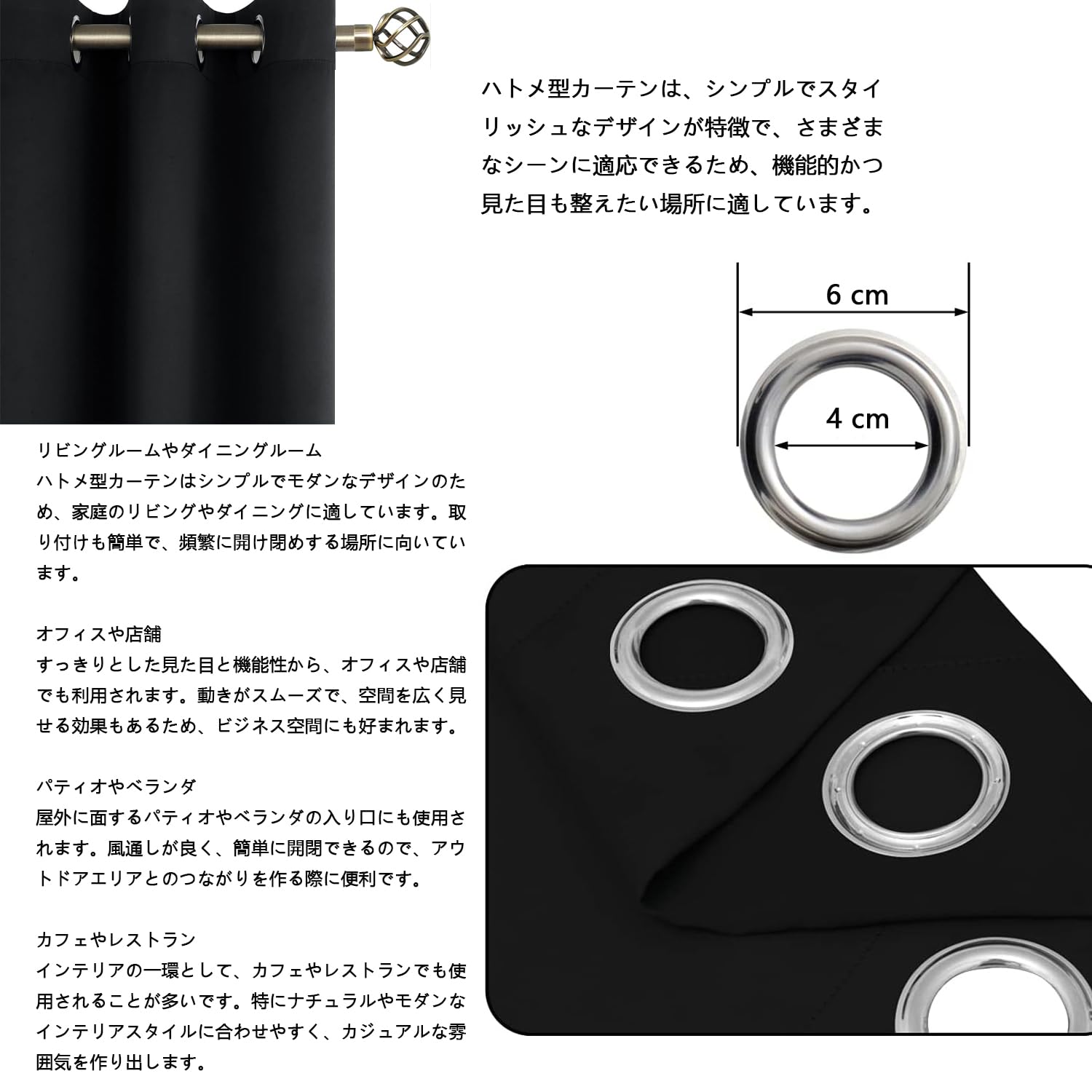 1級遮光カーテン 幅100cm 丈178cm ブラック 2枚入り ハトメ型 間仕切り 目隠し 防寒 保温 遮熱 断熱 冷気遮断 UVカット