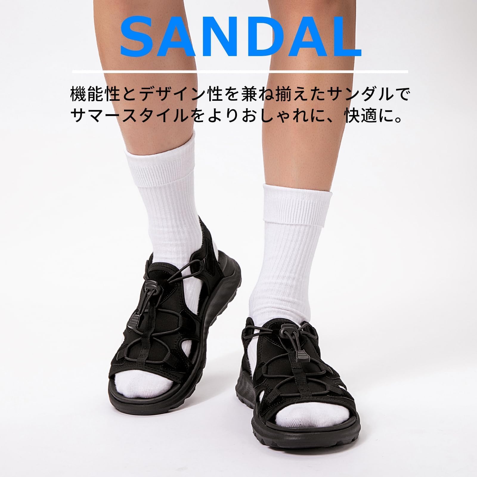 春夏のコーデには欠かせないシンプルで使いやすい定番のスポーツサンダル。フラットヒールと軽量ソールで歩きやすく、タウンユースはもちろんアクティブに動きたいレジャーシーンまで幅広く活躍してくれること間違いなし。全体的にスポーティーなシルエットに仕上げているので夏の軽快なスタイルに溶け込んでくれる。レジャー・フェスにはもちろん、タウンユースにも活躍してくれるサンダルです。