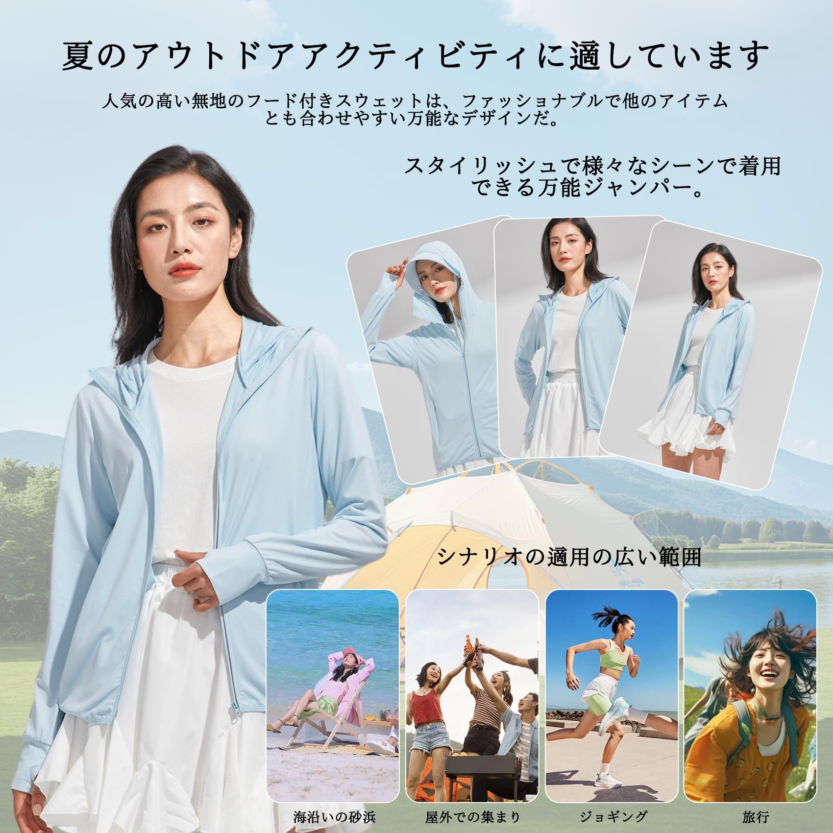 【特価セール】[KANGNAN] ラッシュガード レディース 【UVカット&UPF50+】薄手 長袖 パーカー 軽量 涼しい 冷感 トップス 日焼け止め 水着 紫外線対策 速乾通気性 海 アウター 無地 おしゃれ 春夏秋用 | asaRulu0511