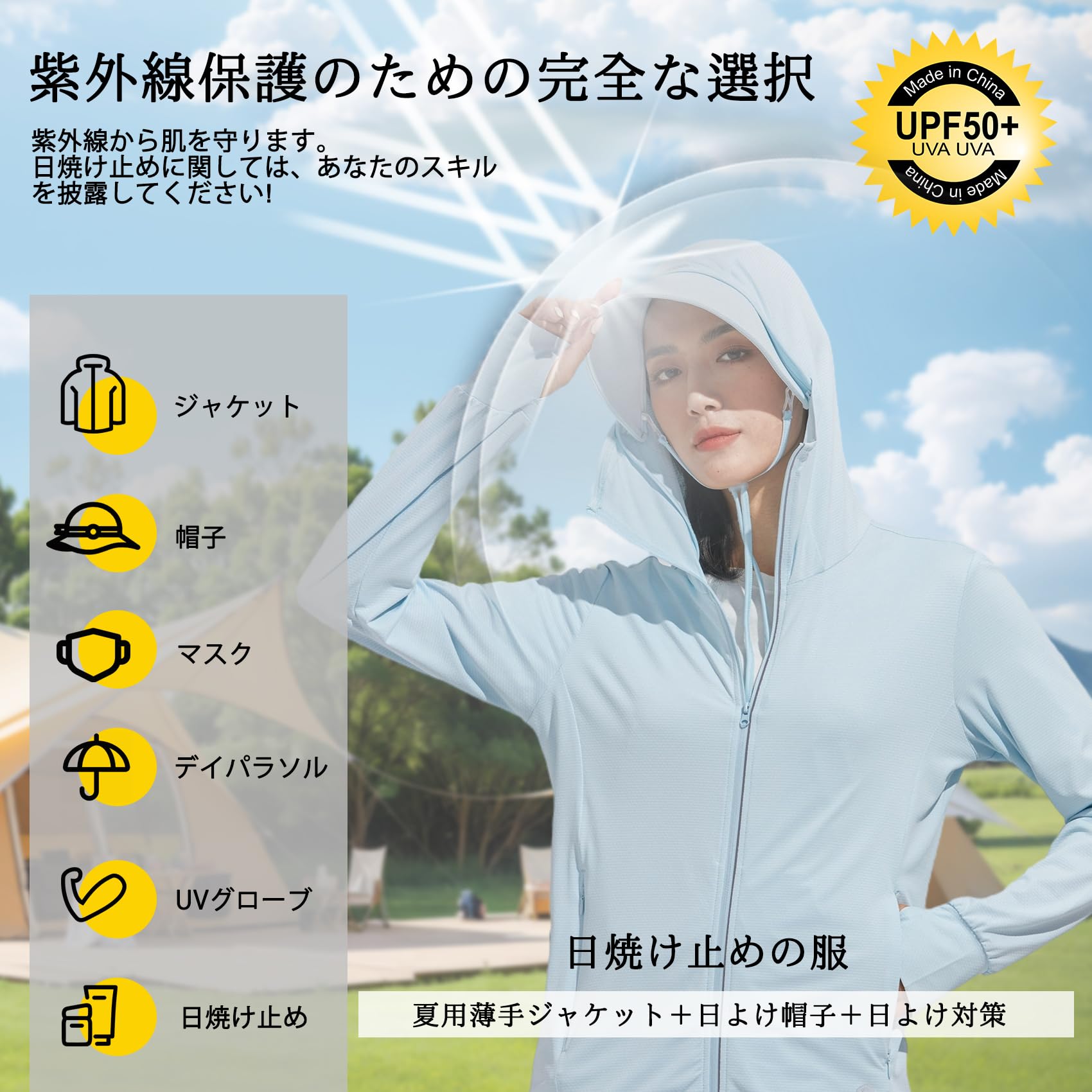 【UVカット日焼け防止対策】UVカット高性能UPF50+が紫外線から肌を守る。このラッシュガード紫外線しっかりカットして、暑い真夏の日差しの下でも涼しく快適に過ご!夏の強い日差しや紫外線から肌を守る、色素沈着やシワなどの老化を防ぎます。