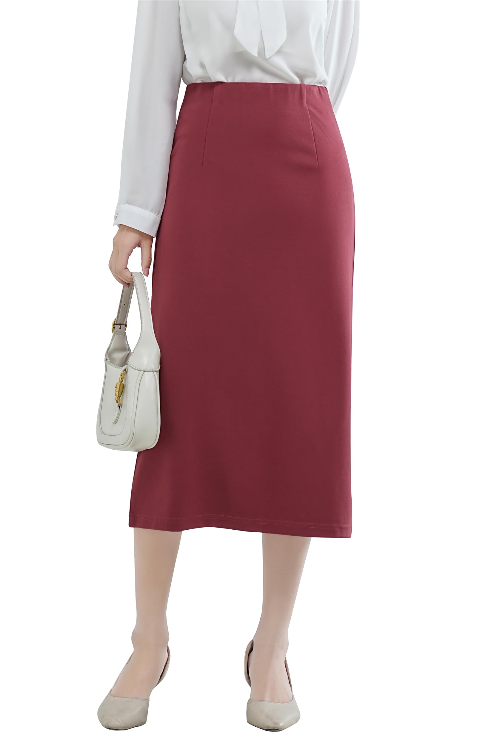 [syvent] レディース 大きいサイズ タイトスカート 春 秋 カラー オフィス ミモレ丈 ストレッチ スリット ウエストゴム スーツ ひざ丈 無地 OL ペンシルスカート