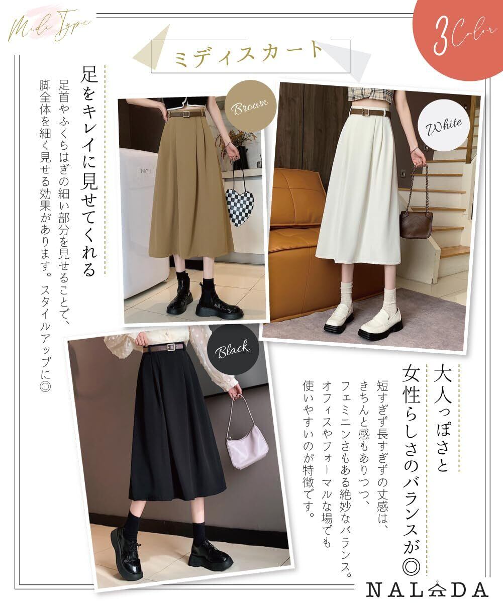 【ミディタイプ&ロングタイプ】ウエストマークでスタイルアップベルト付き