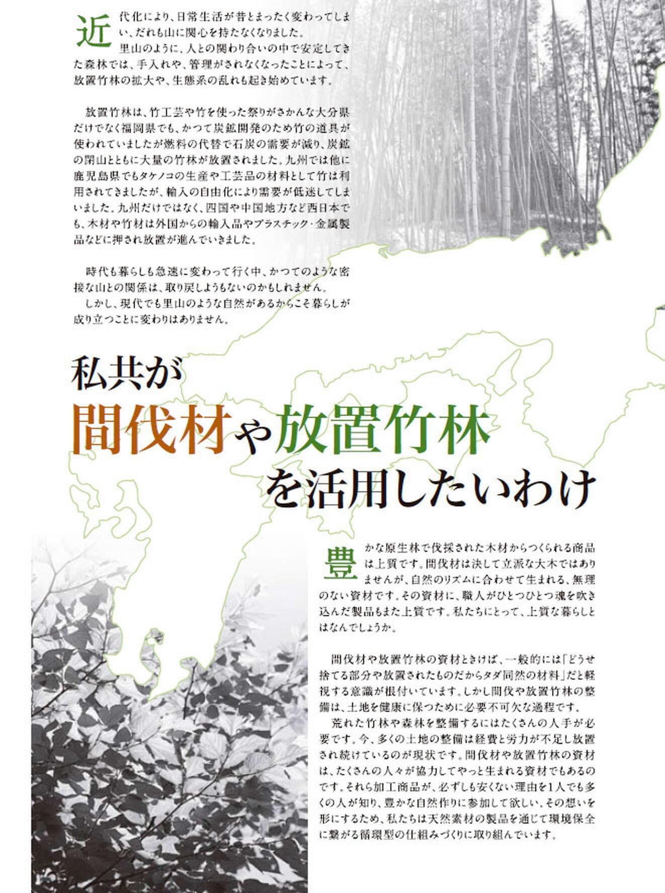間伐材の破棄や放置竹林解消の為の製品企画開発