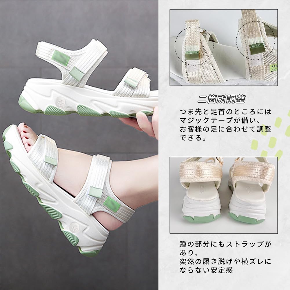 [PAFHL] サンダル レディース 歩きやすい 厚底サンダル 外履き 軽量 スポーツサンダル マジックテープ ストラップ ビーチサンダル 夏 アウトドア カジュアル 22.5cm-25.0cm