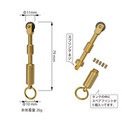 ●使いやすいシンプルなデザインが特徴で、使わないときにはリュックなどに引っかけられるキーホルダータイプです。 ●コンパクトな設計で、タンクの中にはスペアフリントを収納することもできます。