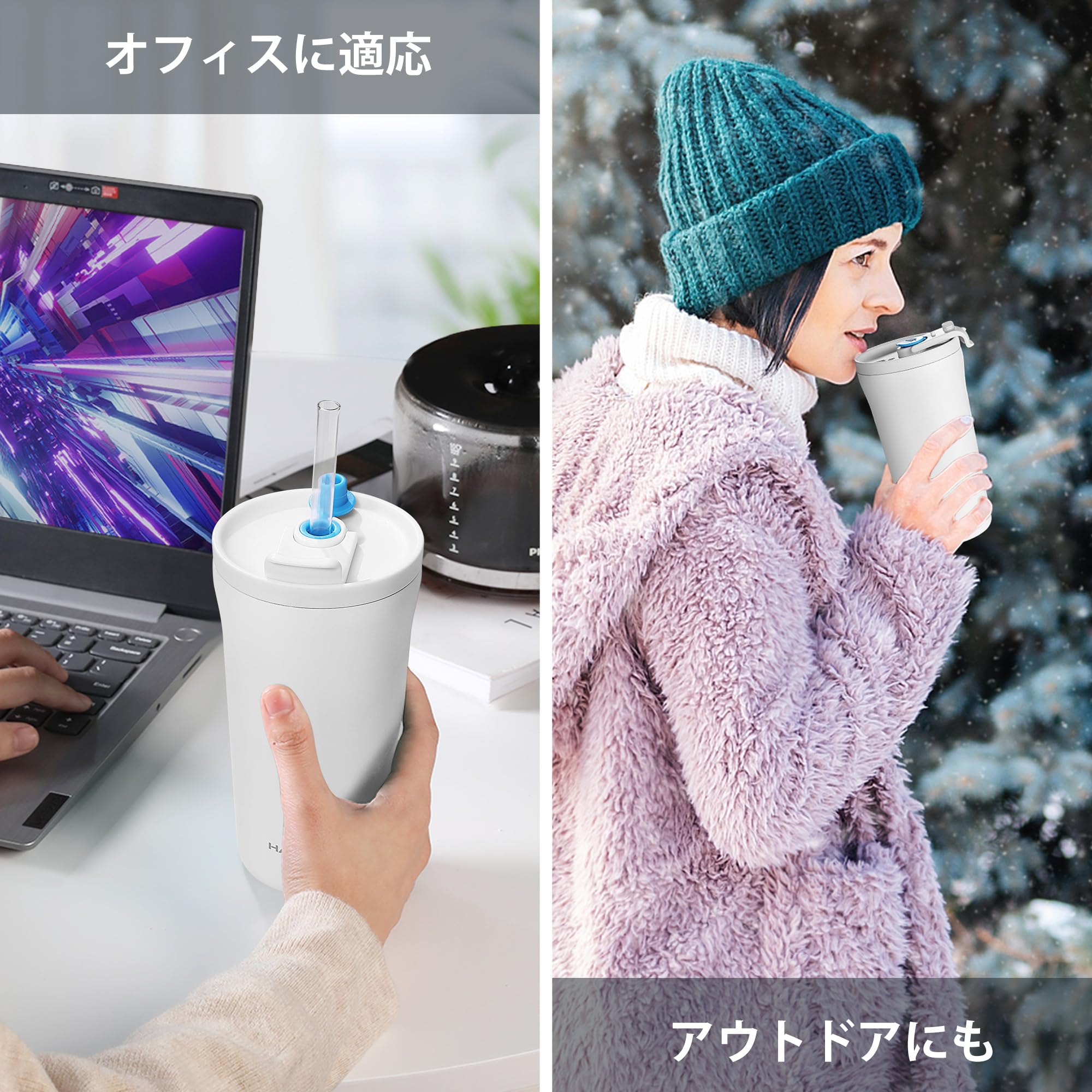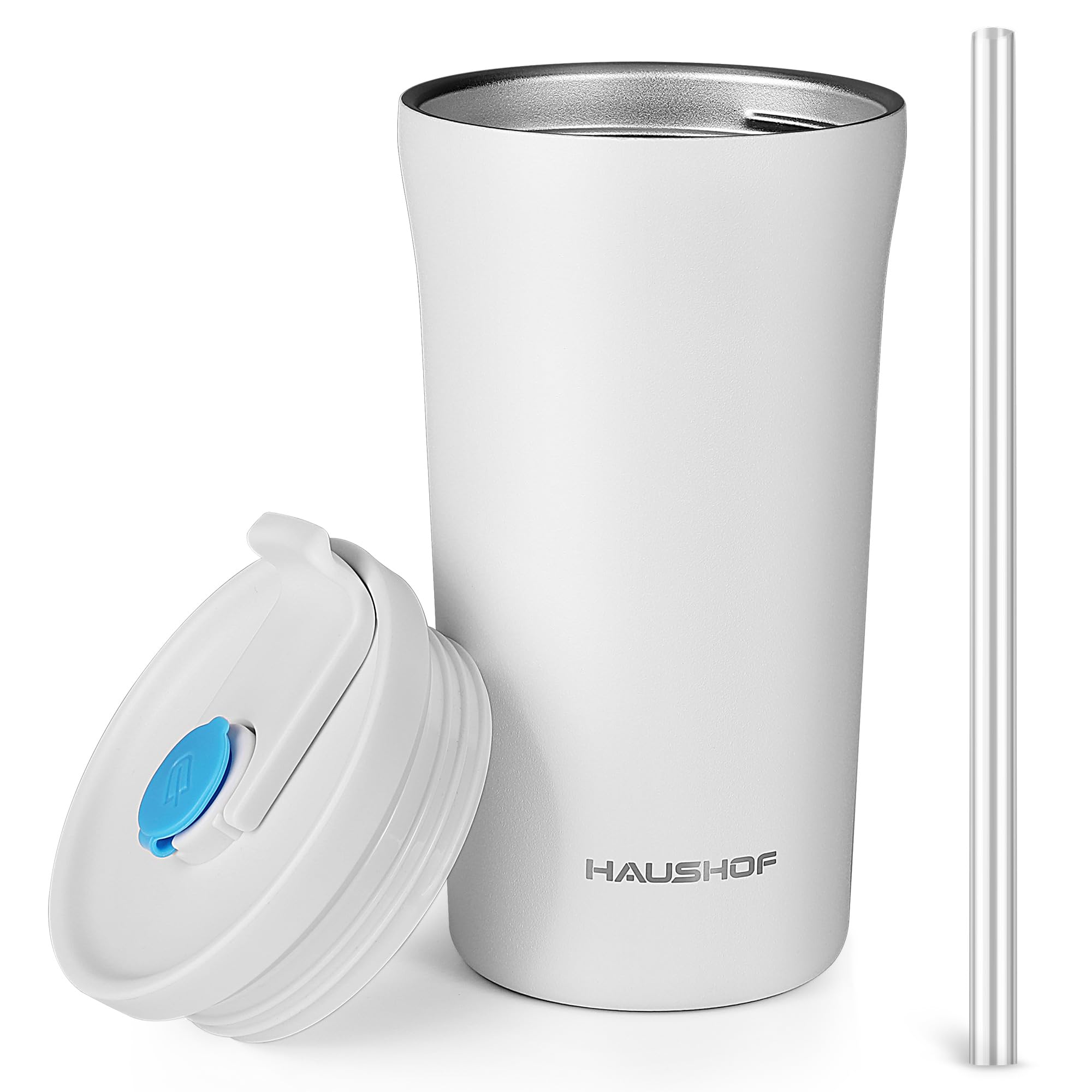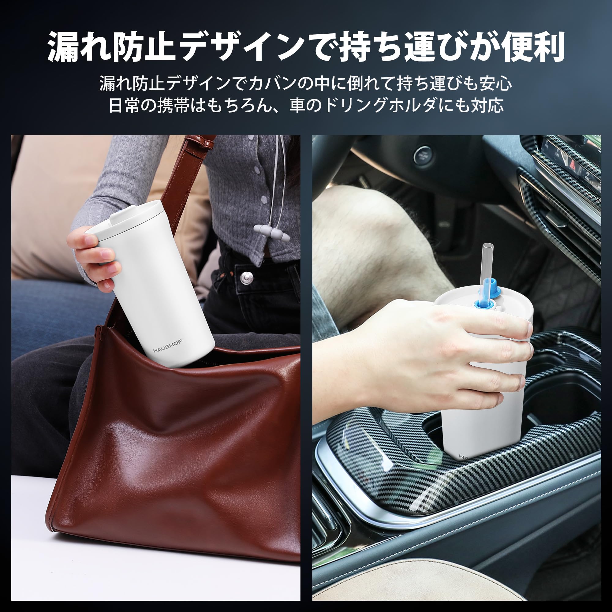 【数量限定】HAUSHOF 真空断熱タンブラー コーヒーカップ ストロー付き スクリュー式ふた付き 500ml 蓋つきでこぼれる心配無い 直飲み&ストロー飲む 保温保冷 水筒 マグボトル ステンレスコップ コンビニマグ 車載用 アウトドア用 釣り 遠足登山 キャンプ バーベキュー プレゼント 父の日 誕生日【ホワイト】 | asaRulu0511