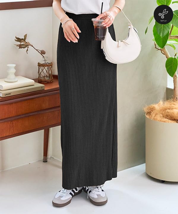 凹凸のあるリブ素材がサラッと快適なタイトスカート。ご自宅でお好みの長さにセルフカットできるので、低身長さんにもおすすめ。深めのバックスリット入りでスッキリ見え&足さばきも◎。Tシャツはもちろんブラウスやシャツなどどんなトップスとも相性が良い万能スカートです。