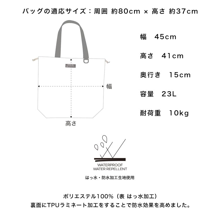 バッグの適応サイズ:周囲 約80cm × 高さ 約37cm