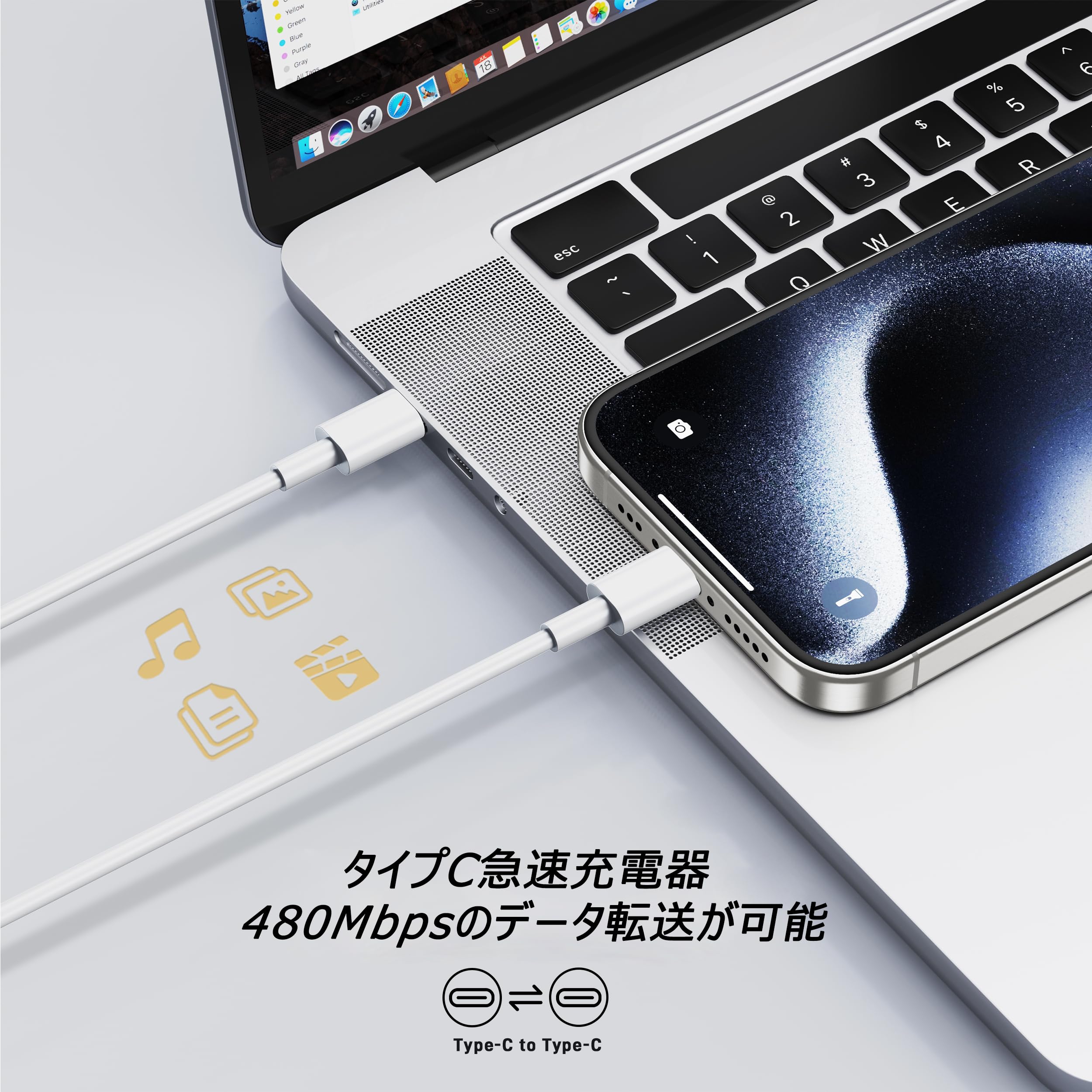 iPhone 16 / iPhone 15 充電器 Type-c タイプc 充電器 PD-20W-急速充電 [MFi/PSE認証済み] 2M USB C to C充電ケーブル2本付き スマホ 電源アダプター タイプC USB iphone 16e/iphone 16/15/Pro/max/iPad Pro/Miniその他USB-C機器に互換品(ホワイト)