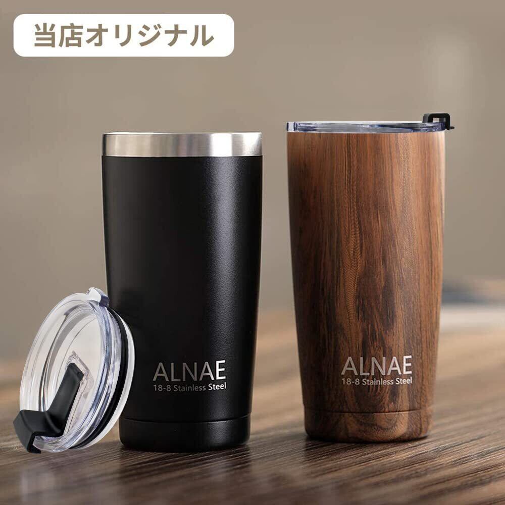 ALNAE タンブラー ふた付き 真空断熱 600ml 水筒 マグボトル コーヒーカップ 二重構造 保温保冷 直飲み 大容量 ビール コーヒー 直接ドリップ 木目調