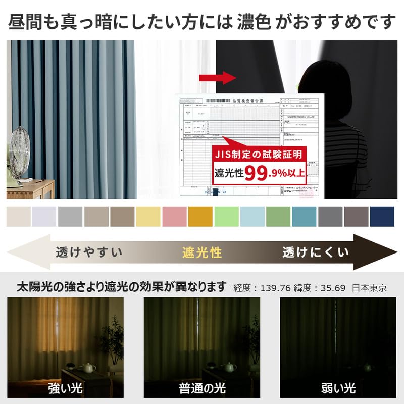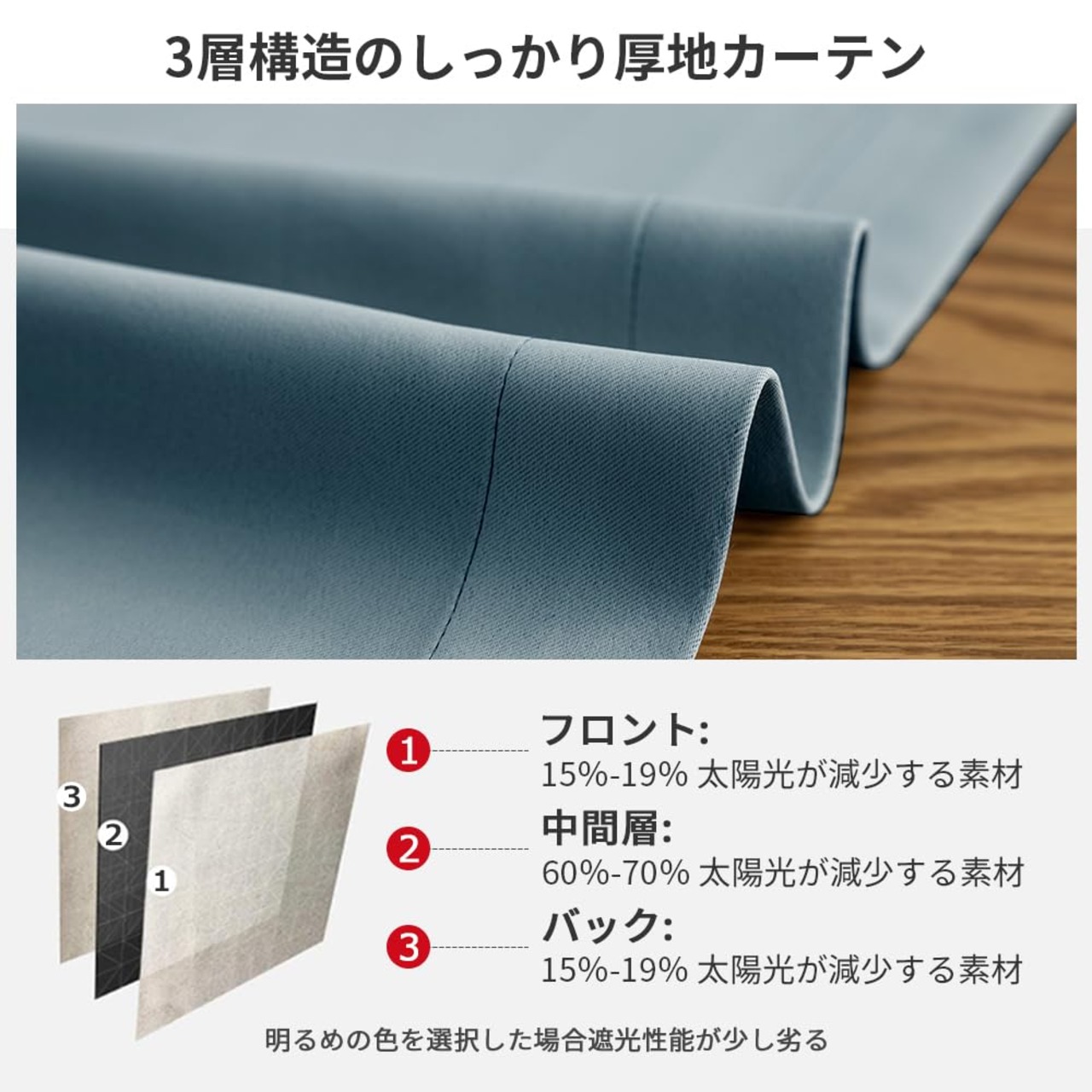 【プライバシーを守る】室内の光を外に漏れにくくする効果があるだけではなく、夜に部屋の明かりを付けている時でも外から人影が見えづらく、プライバシーを守ることができます。女性の一人暮らしでもこのカーテンなら安心感を得られる。