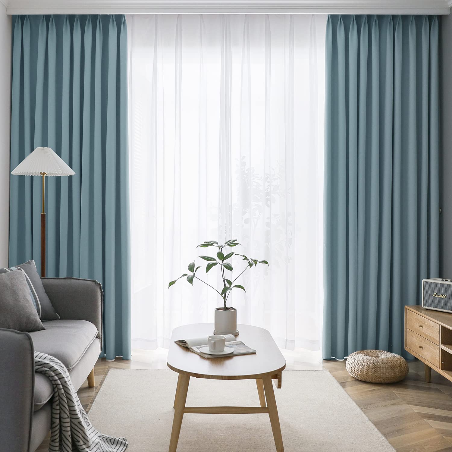 【特価商品】AIFY カーテン 4枚セット 1級 遮光 小窓 ドレープカーテン UVカット 形態記憶加工済み 断熱 節電対策 昼夜目隠し 保温 おしゃれ 洗える 洗濯機対応 (カーテン2枚 レース2枚) 幅100cm×丈178cm ストーンシアン | asaRulu0511