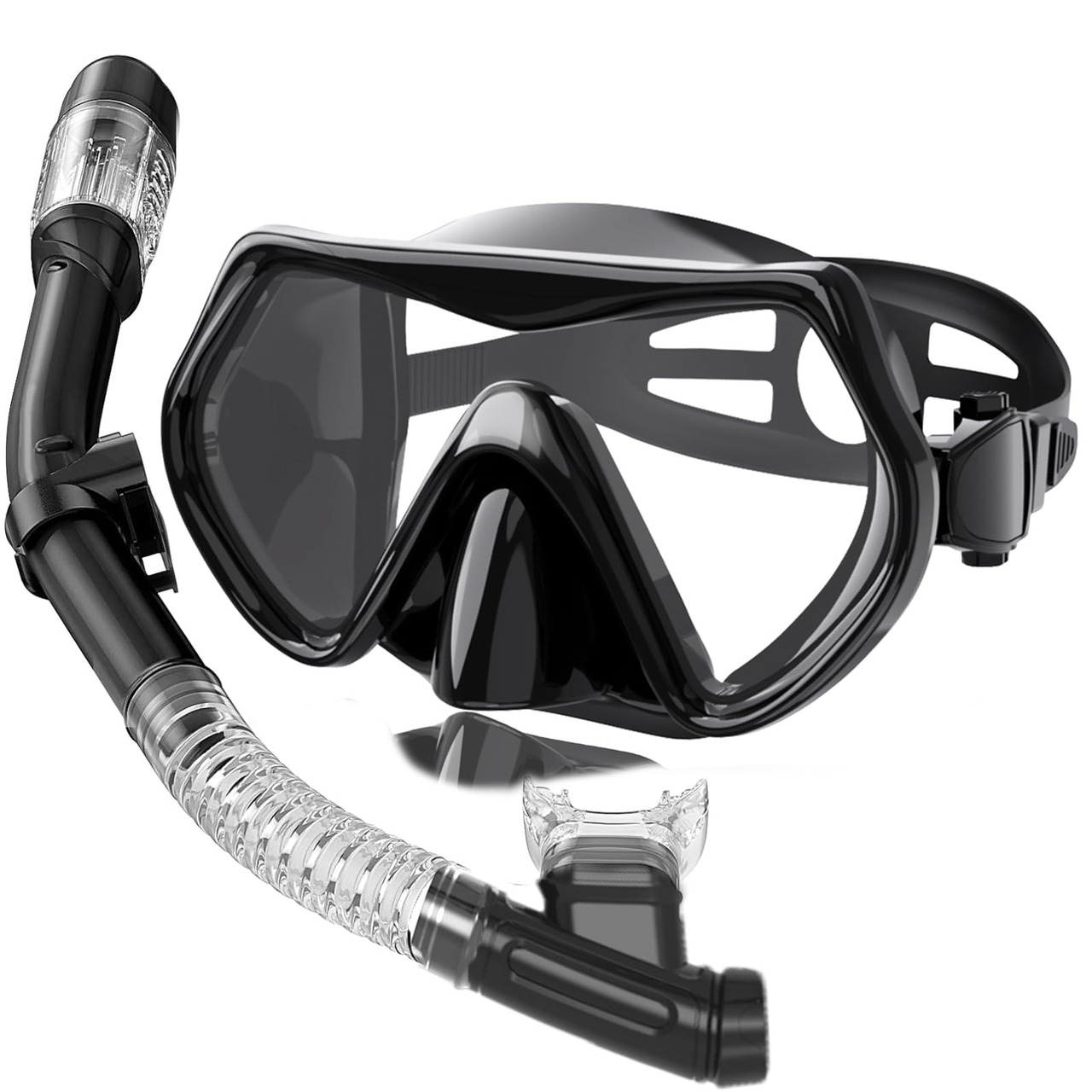 大人のためのシュノーケリングギア、Otowavingシュノーケルマスクセット180°パノラマビューシュノーケルギア、アンチフォグ強化ガラススクーバマスク、ダイビングスイミングトレーニングシュノーケルキット