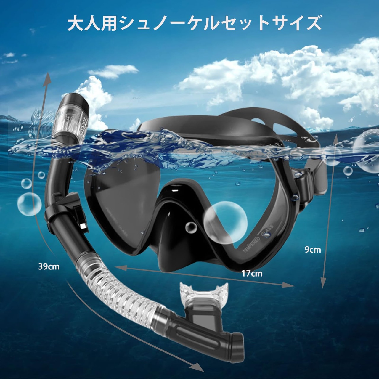 曇り止め&漏れ防止: シュノーケルマスクセットは、強化ガラスレンズ, 速乾性に優れた携帯用メッシュバッグを装備し、旅行をより便利にします。 レンズは新しい防曇技術で処理され、最大限の鮮明な視界を維持し、優れた紫外線防止効果も備えています。100%ドライシュノーケルは水面に空気が入る構造なので息苦しさを感じずに呼吸ができます。入水パイプも水が入りにくい構造を採用。