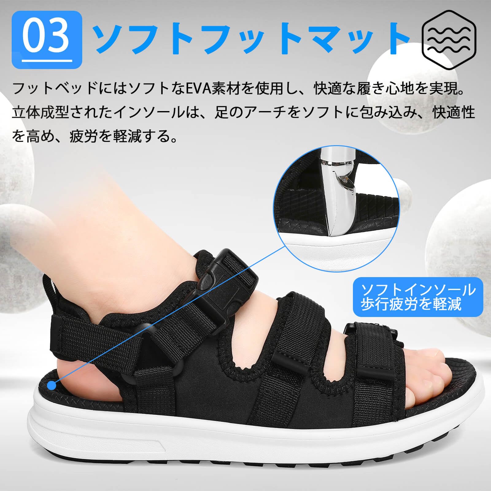 快適な履き心地:インソールにはクッション性のあるミッドソールを使用し、優れた履き心地とアーチサポートを実現。 一日中履いても快適で、歩行を安定させてくれる。 暖かい気候の中、リラックスした旅をお楽しみください。
