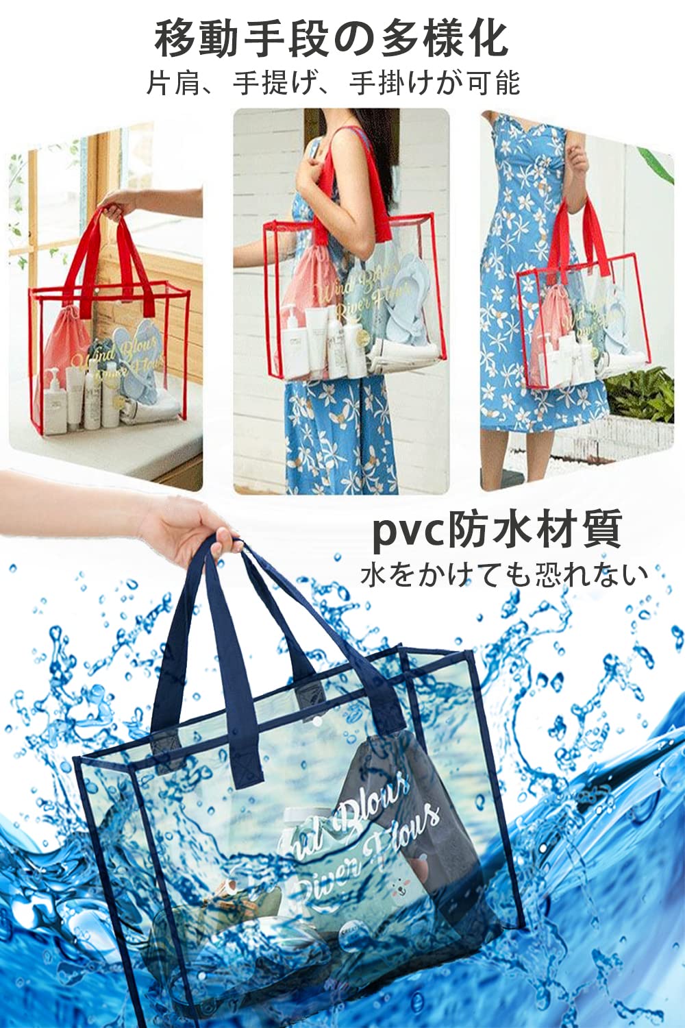 【在庫処分】[YFFSFDC] プールバッグ ビニールバッグ トートバック 透明 大容量 防水 丈夫 スイミング アウトドア 用 (ベージュ)