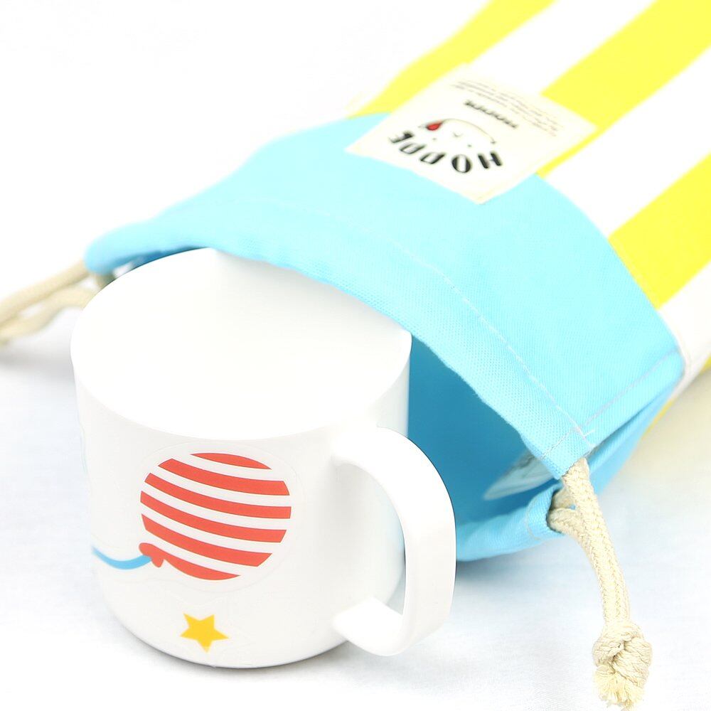 ・お子様でも扱いやすい巾着タイプ。持ち手つきコップもラクラク入ります。