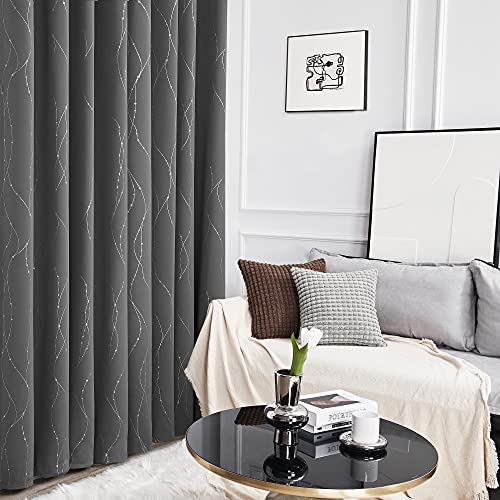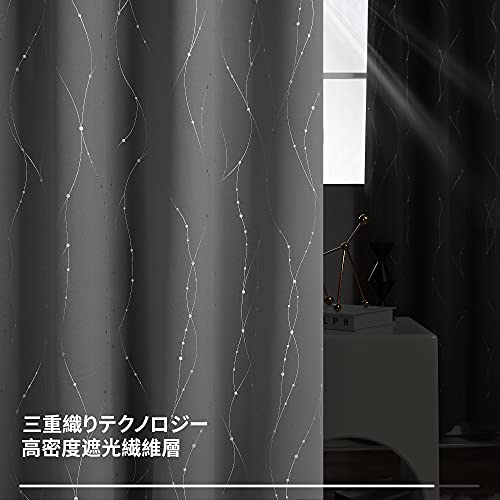 Deconovo 1級遮光 ドレープカーテン 幅100cm丈135cm グレー 銀箔プリント 点線柄 断熱 遮熱 防音 節電対策 昼夜目隠し 2枚組