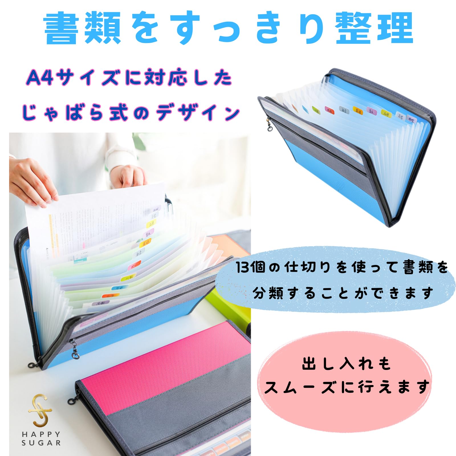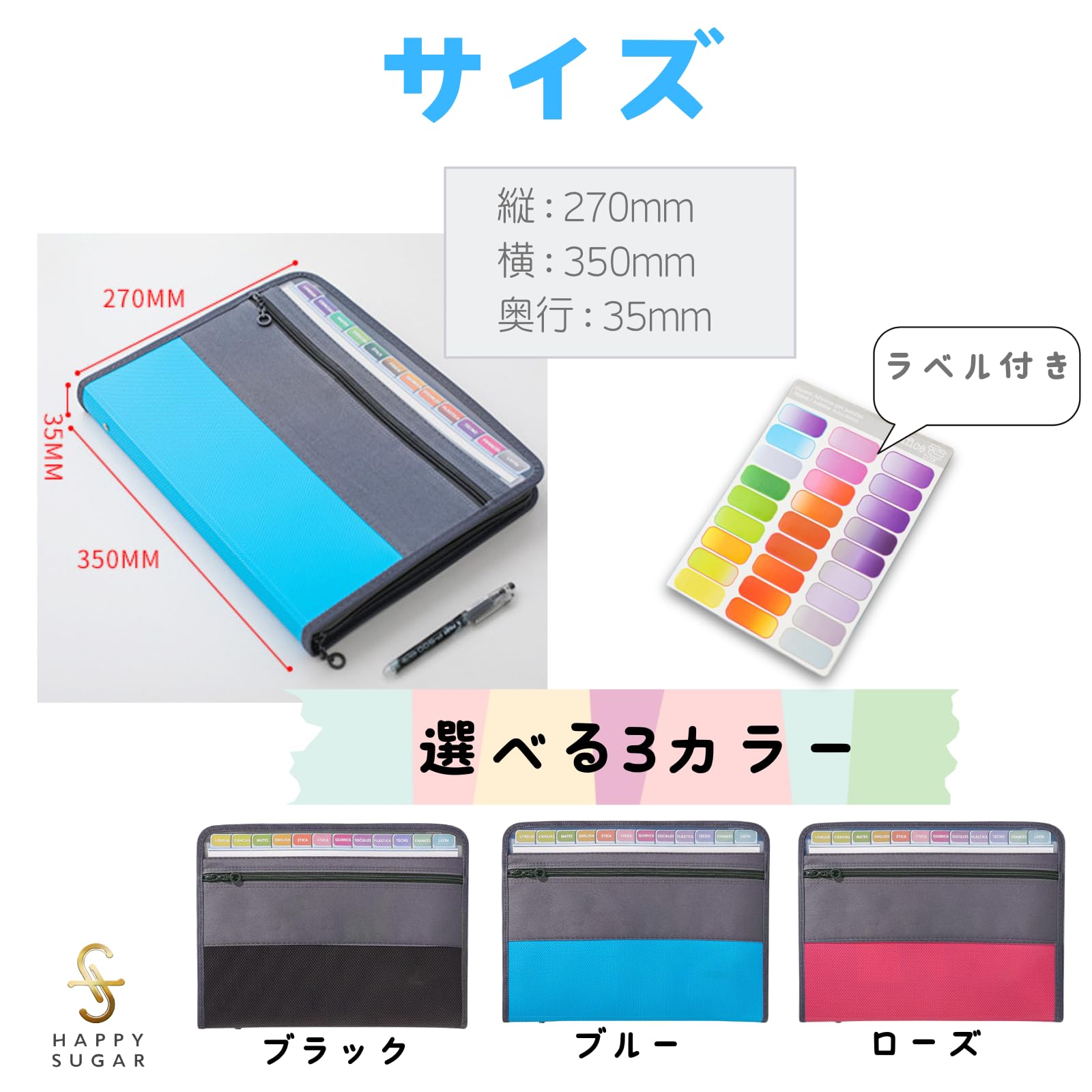 【特価商品】HAPPY SUGAR ドキュメントファイル a4 ドキュメントケース 書類整理 ファイル 書類ケース 持ち運び 仕切りフォルダー ラベル付き 大容量 (ブラック) (ブルー) | asaRulu0511