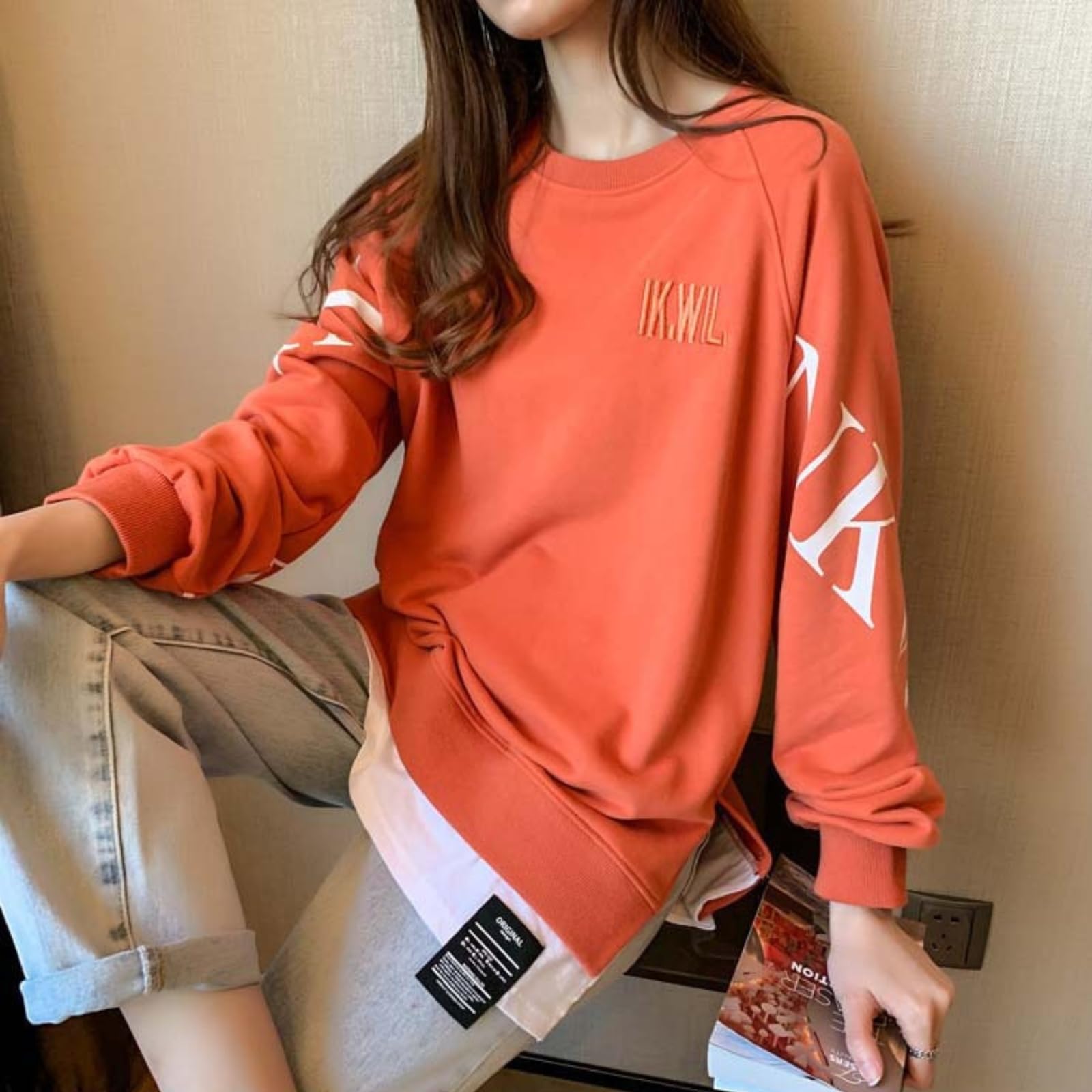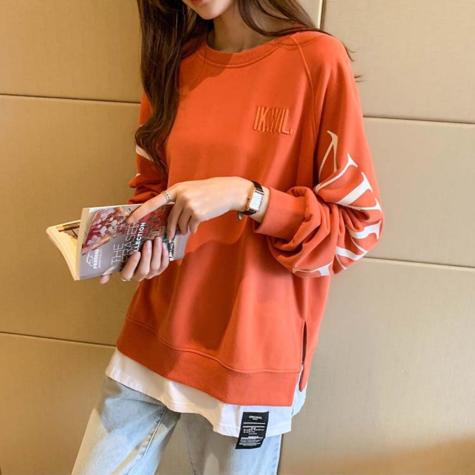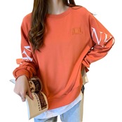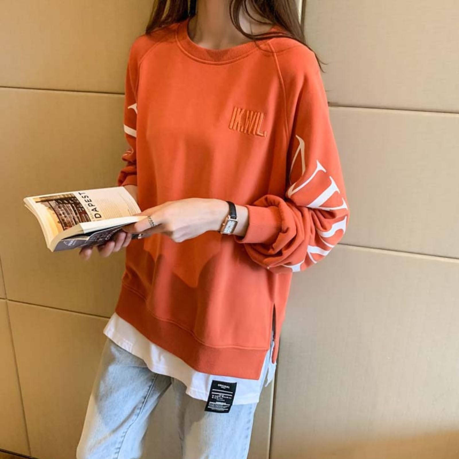 【新着商品】[SeiunAn] トレーナー レディース ロンT スウェット 長袖 薄手 秋 冬 プルオーバー 春 トップス レイヤード 重ね着風 切り替え スリット入り 英字プリント ロゴ 長袖tシャツ フェイクツーピース ゆったり 大きいサイズ おしゃれ 韓国 | asaRulu0511