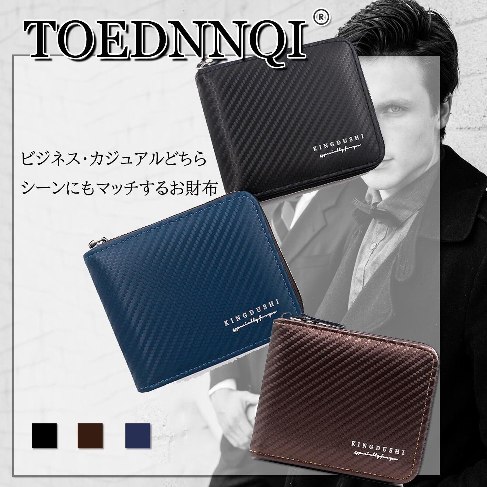 [TOEDNNQI] 財布 メンズ 2つ折り 大容量 二つ折り財布 ウォレット 札入れ 小銭入れ 折りたたみ財布 wallet men 多機能 父の日 誕生日プレゼント ギフト (ブラック)