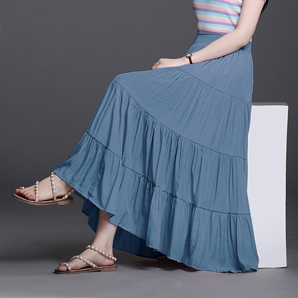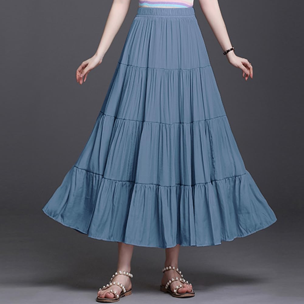 [Sueeya] (スイーヤ) ロング スカート レディース フリル ティアード 体型カバー 着痩せ ハイウエスト おしゃれ 可愛い ウエストゴム フレア ファッション 裏地付 ふんわり 通勤 お出かけ