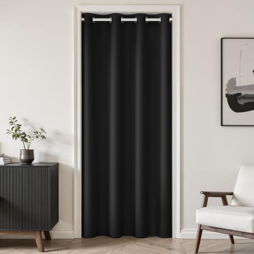 Topfinel カーテン 遮光 間仕切りカーテン 断熱 幅120cm 丈200cm 1枚入り ブラック ハトメ型 突っ張り棒 カーテン 仕切りカーテン ドアカーテン 目隠し 玄関 キッチン リビング
