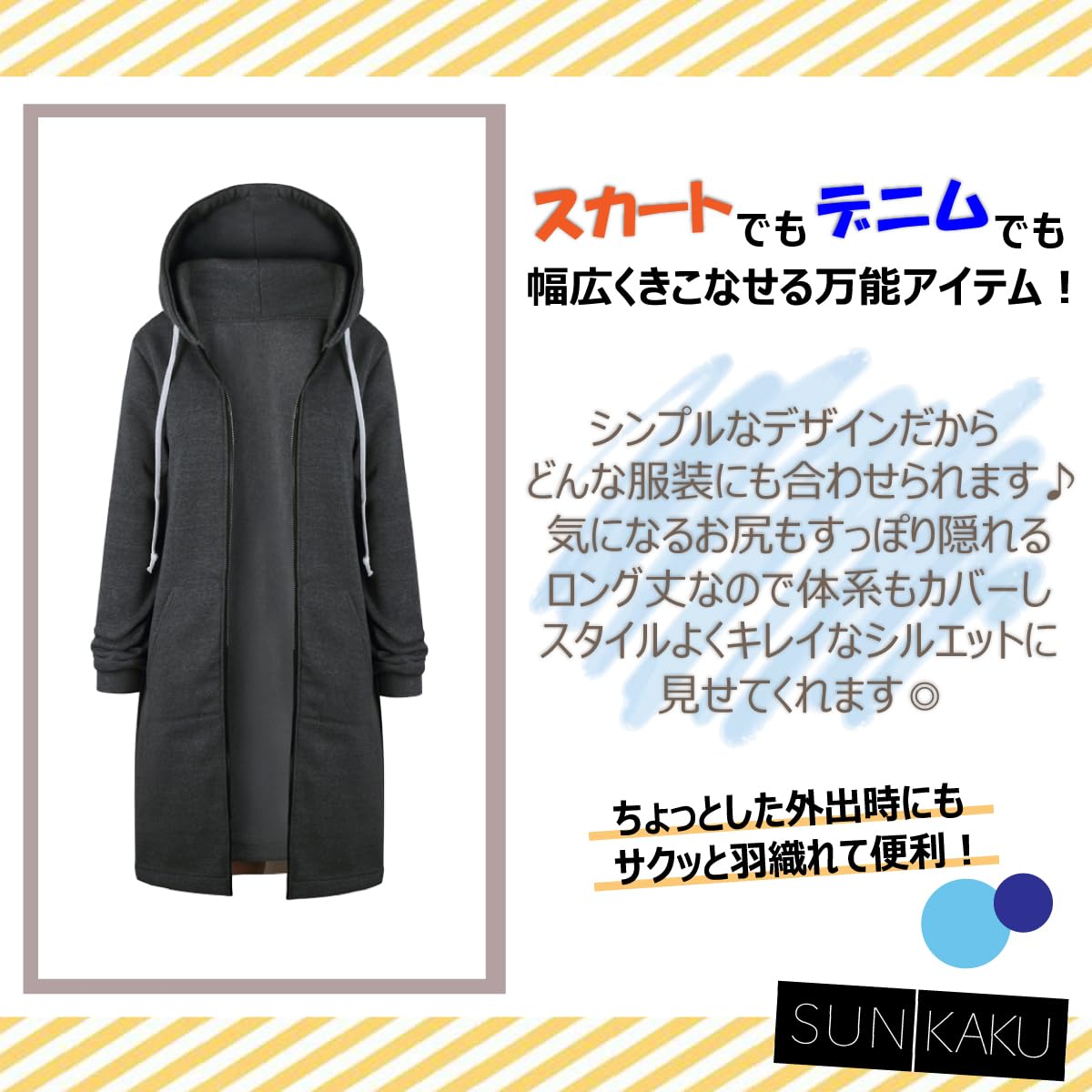 [SUN KAKU] [サンカク] バリエーションあり レディース パーカー ロング ファスナー フード ワンピース 春 薄手 大きいサイズ カジュアル 無地 シンプル