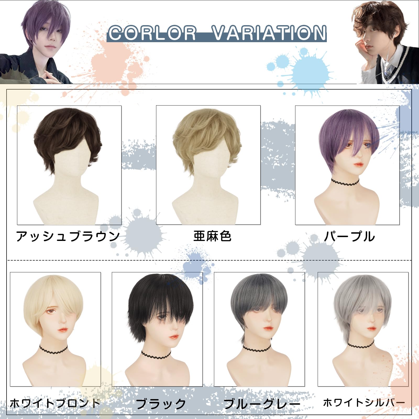 ストレート:ブラック、ブルーグレー、パープル、ホワイトグレー、ホワイトブロンド パーマ:アッシュブラウン、亜麻色