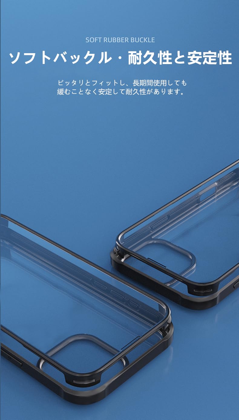 【完全的に全面保護】:マグネット式と違い、角の部分には爪による、両面パーツをしっかりと固定され、高場所から落として、ケースは分離しません。外側のフレームは柔軟なシリコン素材で、落下時に衝撃が吸収できます。また、背面は高透明なPC素材のプレートで、背面デザインも綺麗に確認できます。