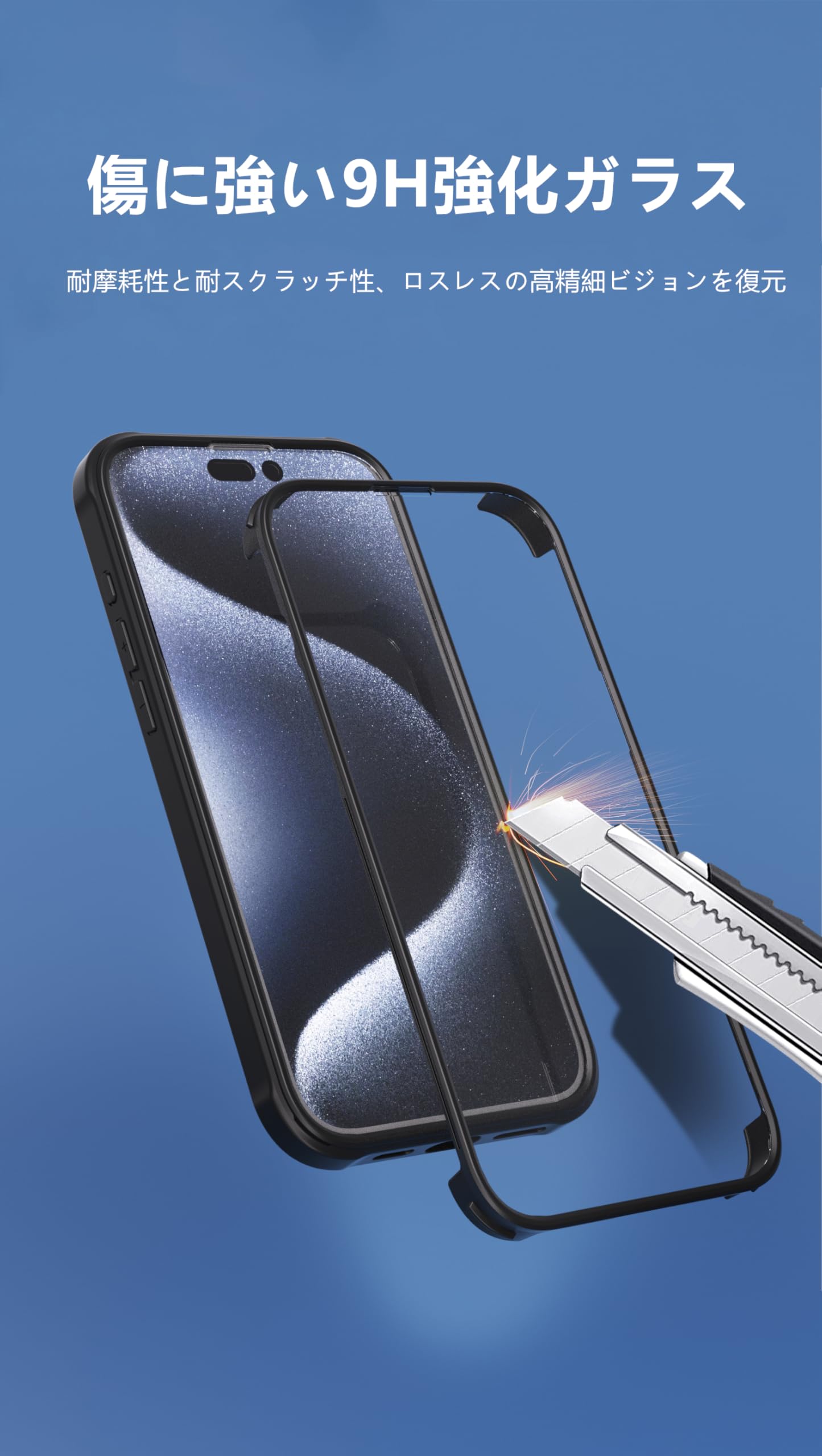 【高タッチ感度】:今までに無い100%画面タッチ感度で、スムーズなタッチスクリーン体験をお楽しみいただけます。また、前面カバーと背面カバーは一体化デザインであり、表面9H硬度ガラスと耐衝撃性を兼ね備えたソフトTPU素材バンパーで作成したの全面保護ケースになります。(※注意:他の液晶フィルムが貼られている場合は、必ずを剥がしてから装着してください。)