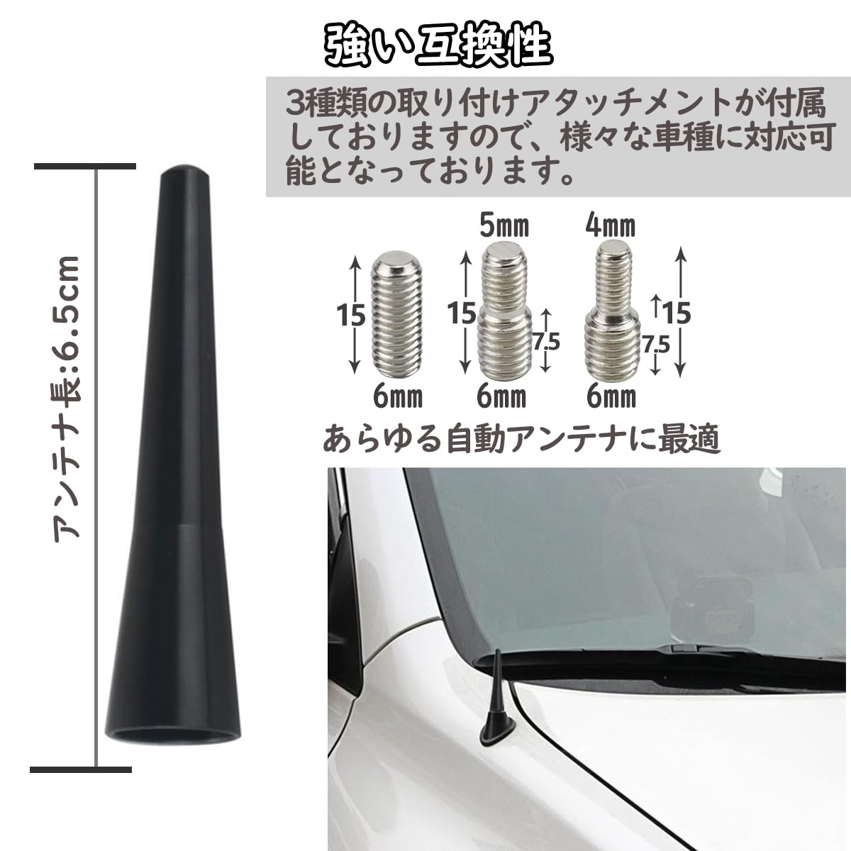 【 商品仕様 】 カーアンテナ本体長:約6.5 cm。付属のネジは3種類ご用意しておりますので、幅広く様々な車種に対応しております。必要なアダプターを簡単に見つけることができます。