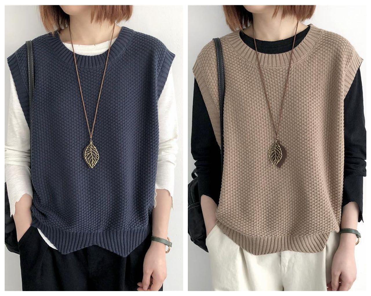 【人気商品】[Grcemlvfe] セーター レディース ニットベスト チョッキ プルオーバー フラクタル ワッフル 丸首 不規則な裾 ゆったり シンプル 着痩せ カジュアル コーディネート 通勤 春 秋 冬 | asaRulu0511