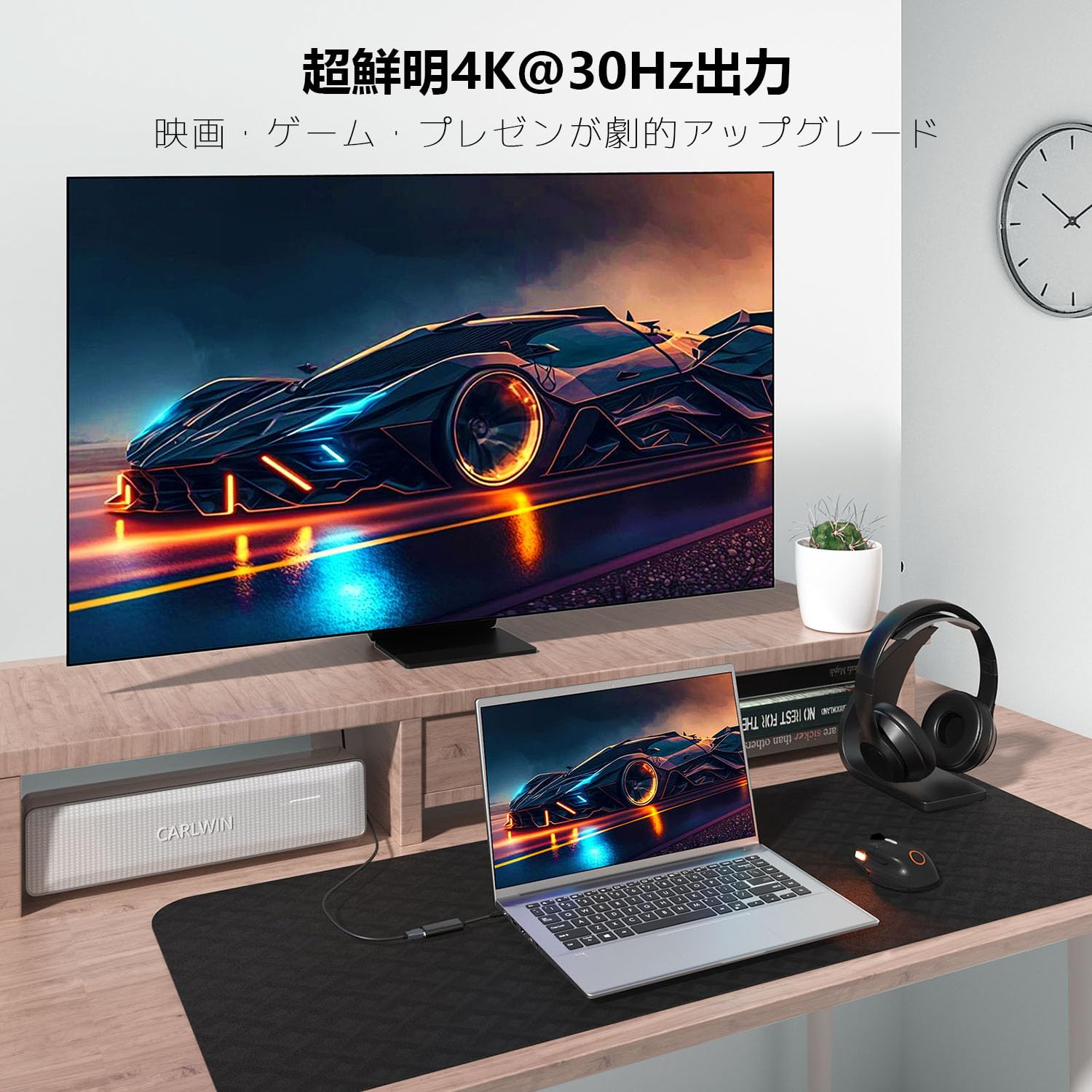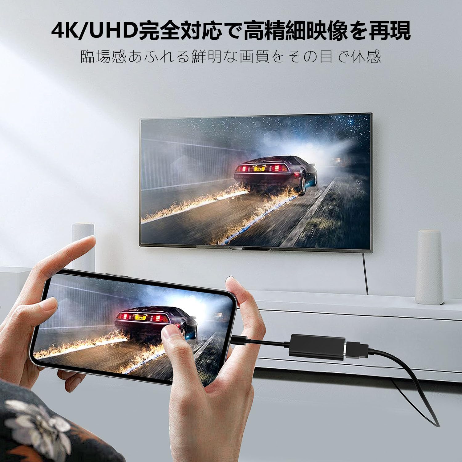 「大人気のスマホからテレビ変換アダプタ」:USB-C/Thunderbolt搭載デバイスからHDMIテレビ・プロジェクターへワンタップ接続。YouTube動画・オンライン会議・ゲームプレイを4K解像度で投影可能。複数デバイスの画面同期表示にも対応(※Sony Xperia/Google Pixel等一部機種除く)。