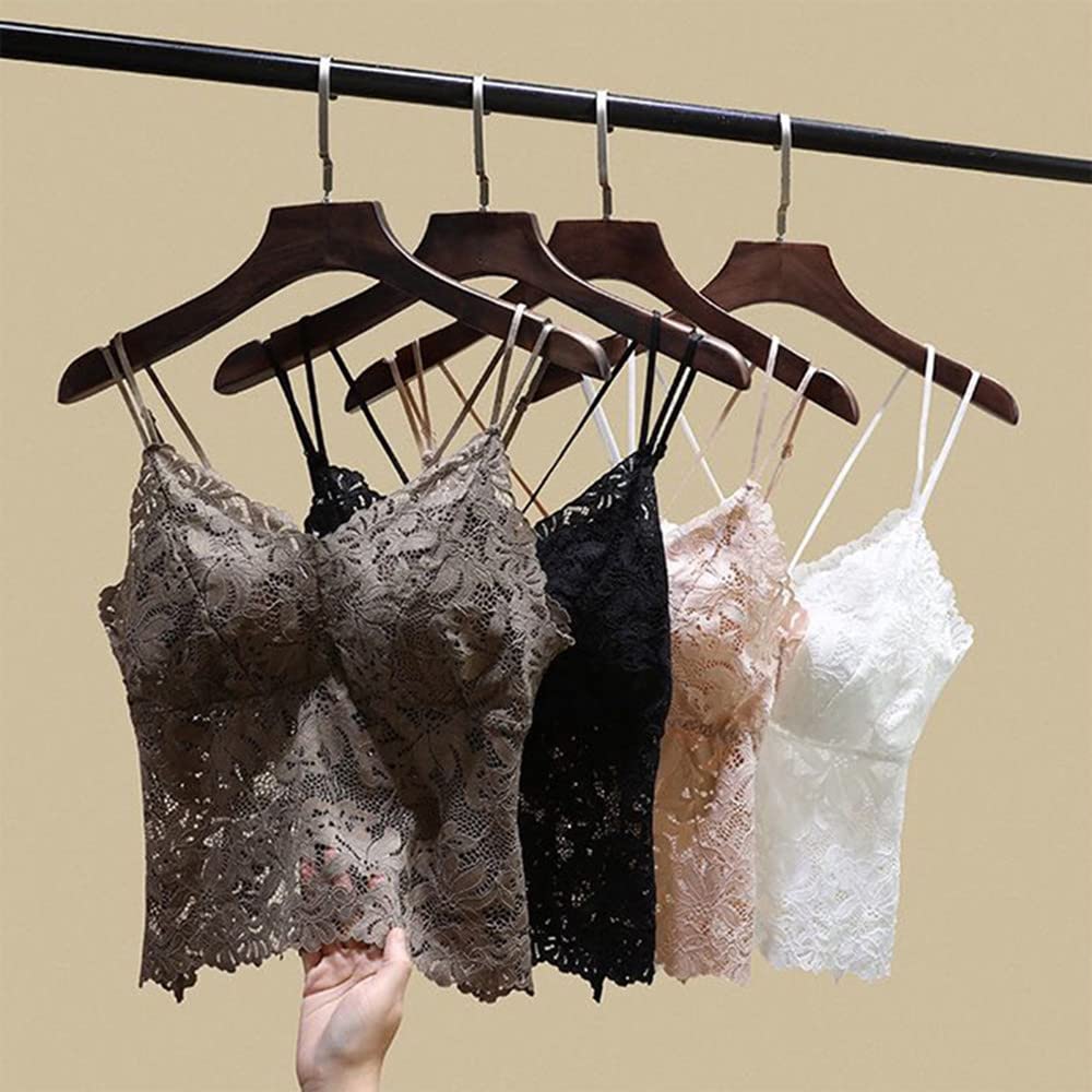[UMIYI] 総レースキャミソール Vネック ブラトップ レディース ショート丈トップス カップ入り キャミソール インナー ノーワイヤー 背中開き 美胸 キャミ チラ見せ 肌見せ セクシー 下着 ベアトップブラ 肌着 大人 可愛い 春 夏